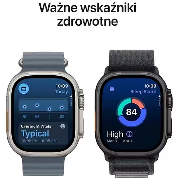 Im więcej wiesz o swoim zdrowiu, tym skuteczniej możesz się o nie zatroszczyć. Z Apple Watch Ultra 3 masz jego pełniejszy obraz. Dzięki apkom takim jak EKG i Parametry życiowe możesz na bieżąco monitorować swój stan. A przełomowa funkcja Powiadomienia o nadciśnieniu to nieocenione wsparcie w profilaktyce zdrowego serca. Powiadomienia o nadciśnieniu. Nadciśnienie dotyka ponad 1,3 miliarda osób na całym świecie i stanowi główną przyczynę zawału serca, udaru czy chorób nerek. Często nie zostaje zdiagnozowane, ponieważ nie daje objawów. Bywa przeoczone nawet podczas wizyty lekarskiej, ponieważ w jej trakcie dokonuje się zwykle tylko jednego pomiaru ciśnienia. Aby otrzymywać powiadomienia o nadciśnieniu, wystarczy nosić zegarek przez minimum 30 dni. Ultra 3 wyśle Ci powiadomienie, jeśli zauważy symptomy możliwego nadciśnienia. Jak to możliwe? Czujnik optyczny gromadzi dane, które następnie analizowane są przez algorytm pod kątem ewentualnego nadciśnienia. W tym celu sprawdzane są reakcje naczyń krwionośnych na bicie serca przez okres 30 dni. Zupełnie nowe spojrzenie. Twarde naukowe podstawy. Przełomowa funkcja Powiadomienia o nadciśnieniu została stworzona w oparciu o zaawansowane metody uczenia maszynowego oraz serię badań naukowych, w których wzięło udział ponad 100 000 osób. Ostatnim krokiem było sprawdzenie jej podczas badań klinicznych. Twój dziennik pomiarów ciśnienia tętniczego. Po otrzymaniu powiadomienia o nadciśnieniu możesz zacząć prowadzić dziennik pomiarów w aplikacji Zdrowie na iPhonie. Będziesz potrzebować do tego ciśnieniomierza. Twój dziennik ułatwi komunikację z lekarzem prowadzącym. Sprawdź jakość snu na dzień dobry. Jakość snu zależy od czynników takich jak jego długość, regularne godziny zasypiania, częstotliwość przebudzeń i czas trwania poszczególnych faz snu. Funkcja Wynik snu każdej nocy analizuje te czynniki, a rano przedstawia podsumowanie w formie czytelnego raportu. W ten sposób dowiesz się, co dokładnie wpływa na jakość Twojego snu, oraz jak sprawić, żeby był bardziej regenerujący. Nie przymykaj oka na bezdech senny. Polega on na powtarzających się epizodach zatrzymania oddychania podczas snu. Nieleczony bezdech senny może zwiększyć ryzyko nadciśnienia, cukrzycy typu 2, chorób serca oraz innych problemów zdrowotnych. Ultra 3 potrafi monitorować zaburzenia oddychania i wysyłać powiadomienia o możliwym bezdechu sennym. Obserwuj codziennie stan zdrowia z apką Parametry życiowe. Aplikacja Parametry życiowe wyznacza typowy zakres wartości dla rejestrowanych w nocy wskaźników zdrowotnych, takich jak tętno, częstość oddechów, temperatura nadgarstka i długość snu16. Wystarczy rzut oka, żeby śledzić zachodzące zmiany. Rób EKG, kiedy i gdzie chcesz. Sprawdzaj objawy migotania przedsionków, korzystając z aplikacji EKG, która generuje jednoodprowadzeniowy zapis EKG. Dane te możesz następnie przekazać swojemu lekarzowi. Otrzymuj powiadomienia o zdrowiu serca. Apple Watch Ultra 3 korzysta z optycznego czujnika tętna oraz zaawansowanych algorytmów do monitorowania pracy Twojego serca przez cały dzień. O niepokojąco wysokim lub niskim tętnie bądź arytmii dowiesz się w apce Tętno. Śledź swój cykl menstruacyjny. Otrzymasz powiadomienie, jeśli wprowadzone przez Ciebie szczegóły cyklu menstruacyjnego będą wskazywać na rzadkie lub nieregularne miesiączkowanie, przedłużone krwawienia czy przewlekłe plamienie. Szacunkowy czas owulacji na podstawie wcześniejszych danych. Ultra 3 ma zaawansowane czujniki, które monitorują temperaturę nadgarstka w czasie snu20. Apka Śledzenie cyklu analizuje te dane i na ich podstawie wyznacza prawdopodobny czas ostatniej owulacji. Informacje te mogą pomóc w planowaniu rodziny. Pomiar natlenienia krwi. Zapierająca dech innowacja. Apple Watch Ultra 3 wyposażono w czujnik i apkę, które mierzą natlenienie krwi zarówno wtedy, gdy chcesz to sprawdzić, jak i w tle. Dniem i nocą. Wspaniały w każdych warunkach.