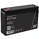 Description - Battery AGM GC 6V 7Ah Green Cell AGM accumulator with a capacity of 6V is made from highest quality materials. The device is perfect to be used heavily, but also to be used from time to time. The accumulator is based on AGM technology, which means that the electrolyte is absorbed by a fiberglass separator, preventing its leakage. This way the device can work in different positions, not just vertically. This is a perfect and much safer alternative for lead-acid accumulators. Ideal for buffer and cyclic operation - the battery can be used, among others in UPS, electric toys, alarm systems, monitoring or portable devices Maintenance-free battery operation - up to 5 years life Construction preventing leakage of electrolyte - the possibility of safe battery operation in any position Reliability of operation - resistance to vibration. storage capacity in a wide range of temperatures