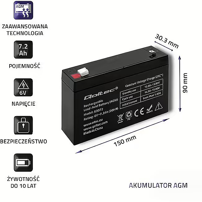Name - Qoltec Akumulator AGM 6V 7,2Ah