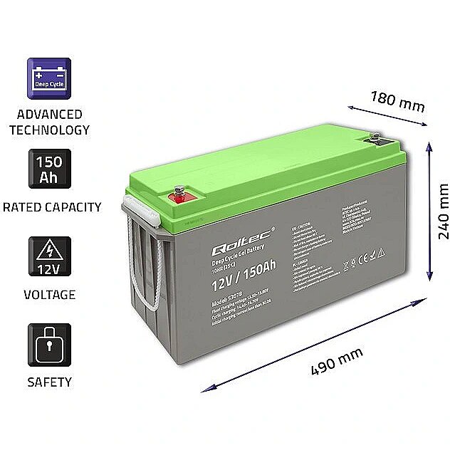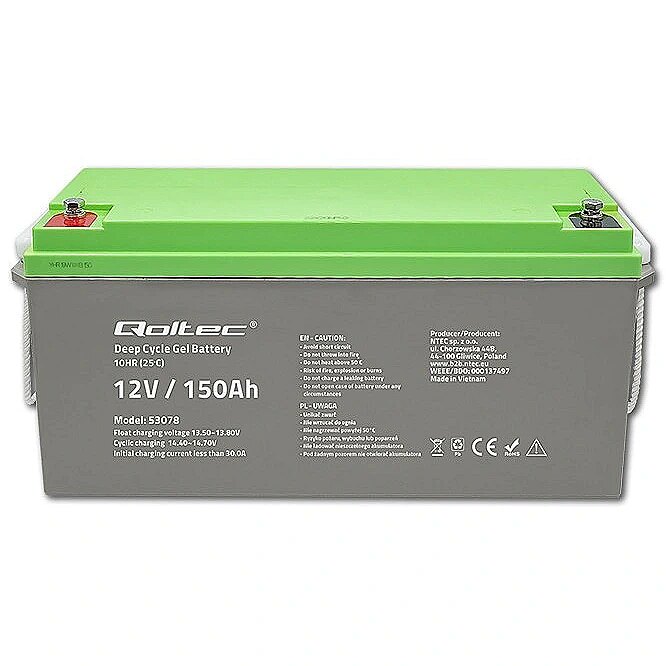 productName - Qoltec 53078 Deep Cycle Gel battery| 12V | 150Ah | 44.5kg