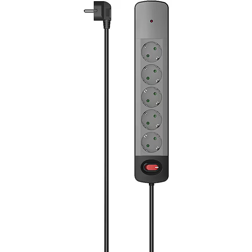 ShortSummaryDescription - Hama 00223056, 1.5 m, Indoor, Type F, Angled, Black, Grey, 5 AC outlet(s)