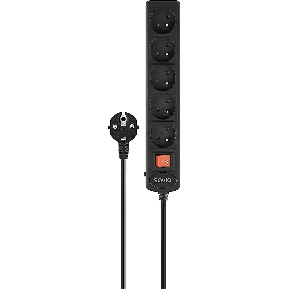 Description - Automatic surge protection power strip, 5 outlets, 3 m, LZ-17 Surge Protection The LZ-17 surge protection power strip effectively safeguards connected devices against power surges and sudden voltage spikes. Thanks to the use of a varistor with a thermal fuse, it ensures everyday safety and reliable protection for your TV, computer, and office equipment. 5 Grounded Sockets The model is equipped with 5 grounded sockets, allowing you to safely connect several devices at once. Its solid construction and precise workmanship guarantee stable connections and long-lasting durability. Automatic Fuse The built-in automatic fuse protects the power strip from overload by automatically cutting off the power when the maximum load is exceeded. After activation, simply disconnect the strip from the mains and press the fuse button to restore powerno need to replace the fuse. ON/OFF Switch Thanks to the practical ON/OFF switch, you can easily control the power flow and disconnect all connected devices with a single move. Its a convenient and energy-saving solution that enhances safety and user comfort. Full Copper Cable The Savio LZ-17 power strip is equipped with a cable made of full copper wires, providing excellent conductivity and durability. The 3-meter cable length allows flexible device placement in both office and home environments.