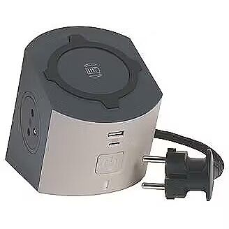 Description - Extension cable 2x2P+Z Induction+USB A/C Multi-socket charging station 16 A/ 230 V 2x2P+E Surface + 1 wireless induction charger + USB Type-A+C - dark grey. Charging station within reach, compact and practical with inductive charger, ideal for the office or home. Extension cable with 2 flush-mounted sockets in French-Belgian standard 2P+E, 16A, 230V, 3680W. Qi 10.0W inductive platform with non-slip surface and charge indicator. Recommended for smartphone with protective case USB charger type A+C 3.0A 5.0V 15.0W Black braided cable 2m long with a cross section of 1.5mm The strips are equipped with flush mounted sockets, which ensures the aesthetics of the product and prevents the accumulation of dirt. Inductive chargers 10.0W Qi and USB type A+C 3.0A 5.0V 15.0W