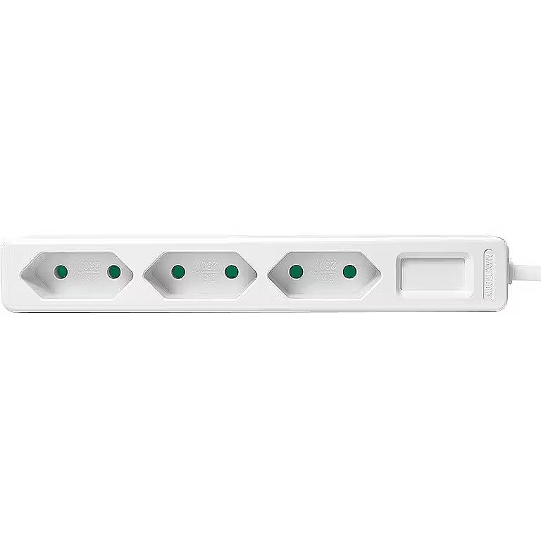 Dane techniczne: Dodatkowe informacje - 3 gniazda Euro|Gniazda z przesłoną bezpieczeństwa|IP20: Ochrona przed wnikaniem ciał stałych >12,5 mm i kontaktem z palcami|Wtyczka kątowa konturowa| Zasilanie: 230 V/7,5 A, 50 Hz maks. 3400 W|Specyfikacja kabla: H05VV-F 2G 1,0 mm²|