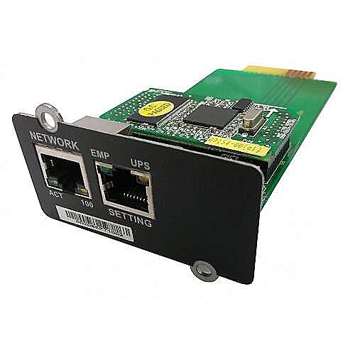 The NMC Network Card allows remote management of the UPS via a local, internal (Intranet) network or remotely via the Internet. UPS control and service can be carried out via SNMP agents, the HTTP website interface, or the Telnet terminal.