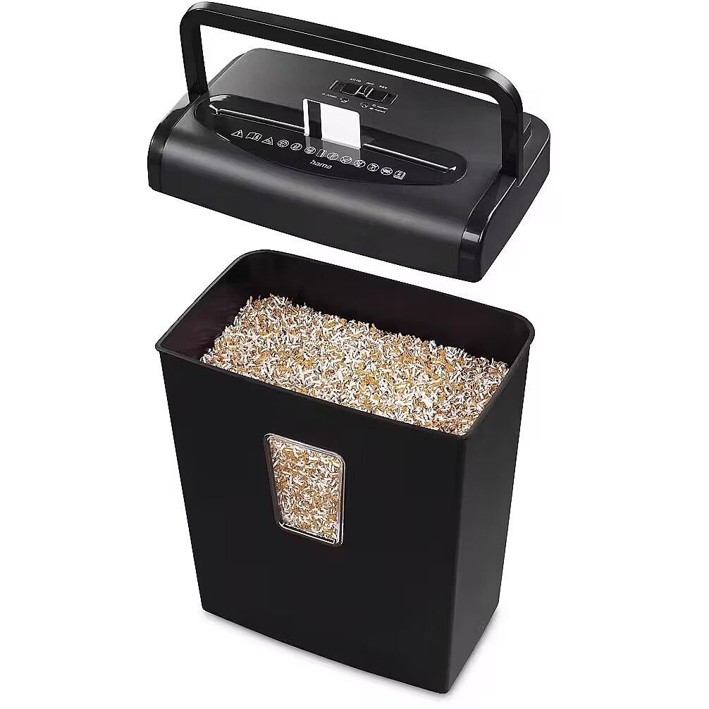 LongDesc - Private as well as business documents: personal and other sensitive data should be carefully shredded before disposal. Our premium shredder with particle cut gives fraudsters no chance: shred crucial documents and plastic cards with ease.GDPR-compliant thanks to security level 5Securely destroy confidential data: according to DIN 66399, this document shredder with security level P5 is suitable for the destruction of personal data in paper form in accordance with the General Data Protection Regulation (GDPR)Small shredder for high demandsCompact design with security level P-5: the optimised format makes the shredder small and space-saving and at the same time meets high requirements for data protection and paper volume thanks to the large waste paper basket (20 litres)Extra-small scraps of paperThe smaller the shreds, the higher the volume: the document shredder with particle cut (micro-cut) produces extra-small paper shreds measuring 2x12 mm and creates a higher collection volume in the basket8-9 sheets at a timePaper shredder with excellent cutting performance: the paper shredder shreds up to 8 sheets of paper (80 gsm) or 9 sheets of paper (70 gsm) in one cutting processSecure disposal of plastic cardsShredder for documents and more: plastic cards with magnetic strips, EC cards or credit cards can also be shredded quickly and securely via the paper feedOverheating protectionSafe from premature damage: to prevent defects in the device, the document shredder with overheating protection switches off automatically and cools down in timeStaple-safeShred documents easily: thanks to the staple-proof quality steel blade shafts, the document shredder also shreds stapled files effortlessly