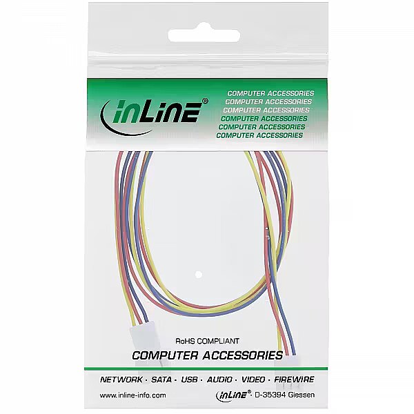 LongDesc - Reliable signal extension:Extends 3-pin fan connections including speed signal – ideal for speed monitoring.Flexible cable routing:More freedom when laying fan cables in complex system environments.Standard compatible:Suitable for all common 3-pin Molex fan connectors – ready for immediate use.Robust workmanship:Resistant sheathing ensures a long service life even with frequent modifications.Versatile applications:Suitable for PC systems, industrial applications or server infrastructures.The InLine® fan cable extension with 3-pin Molex plug/socket has been specially designed for professional use in IT and system environments. It enables reliable extension of fan connections while also fully transmitting the speed signal – essential for monitoring and diagnostic functions during operation.The increased flexibility in cable routing makes the cable ideal for integration into complex housing structures and server environments.The robust, precision-machined cable material is designed for long-term use and is suitable for desktop PCs as well as industrial systems or OEM integrations. Thanks to standardised 3-pin Molex connectors, the fan cable is universally applicable and fully compatible with motherboards, fan hubs or controllers.System houses and professional users benefit from the combination of signal fidelity, easy integration and durable workmanship – an indispensable accessory for precisely designed cooling solutions.Connector A: 3-pin Molex plugConnector B: 3-pin Molex socketExtension of the speed signal: YesCable type: Fan extension cableArea of application: PC, server, industry