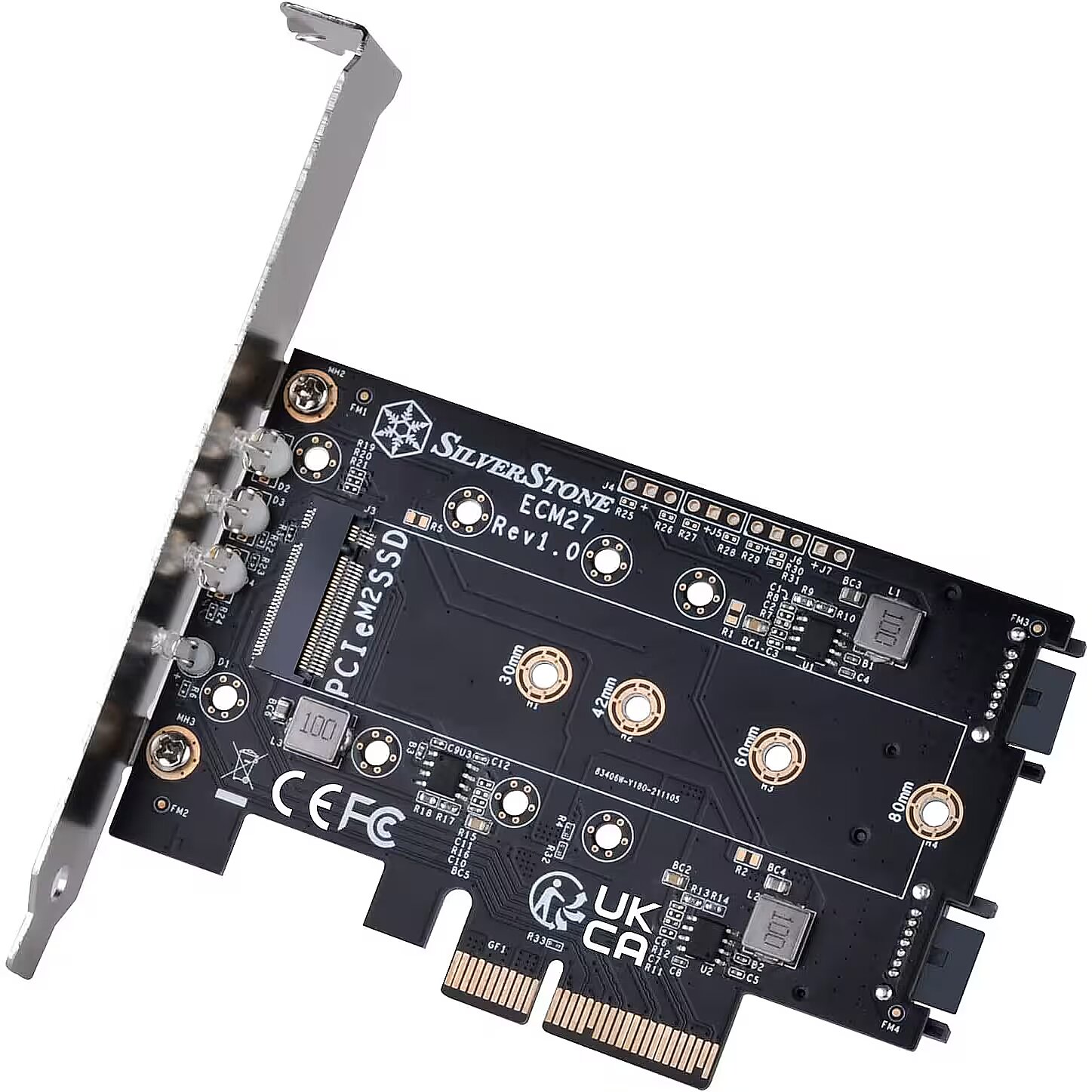 name - Silverstone SST-ECM27 M.2/SATA Adapterkarte, PCIe 4.0, 1x M-Key, 2x SATA 6G - Low Profile