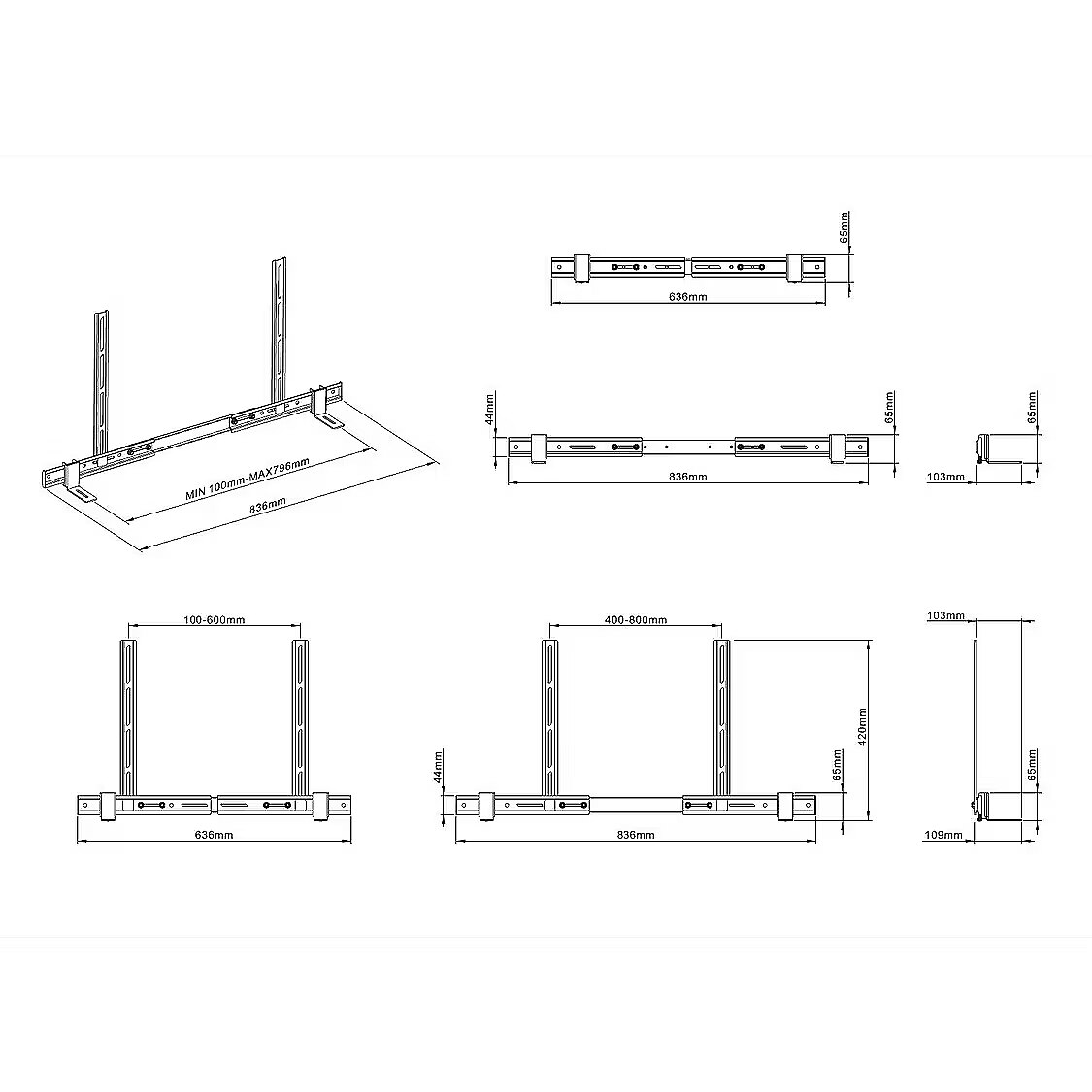 Weight & dimensions - Width adjustment range - 636 - 836 mm