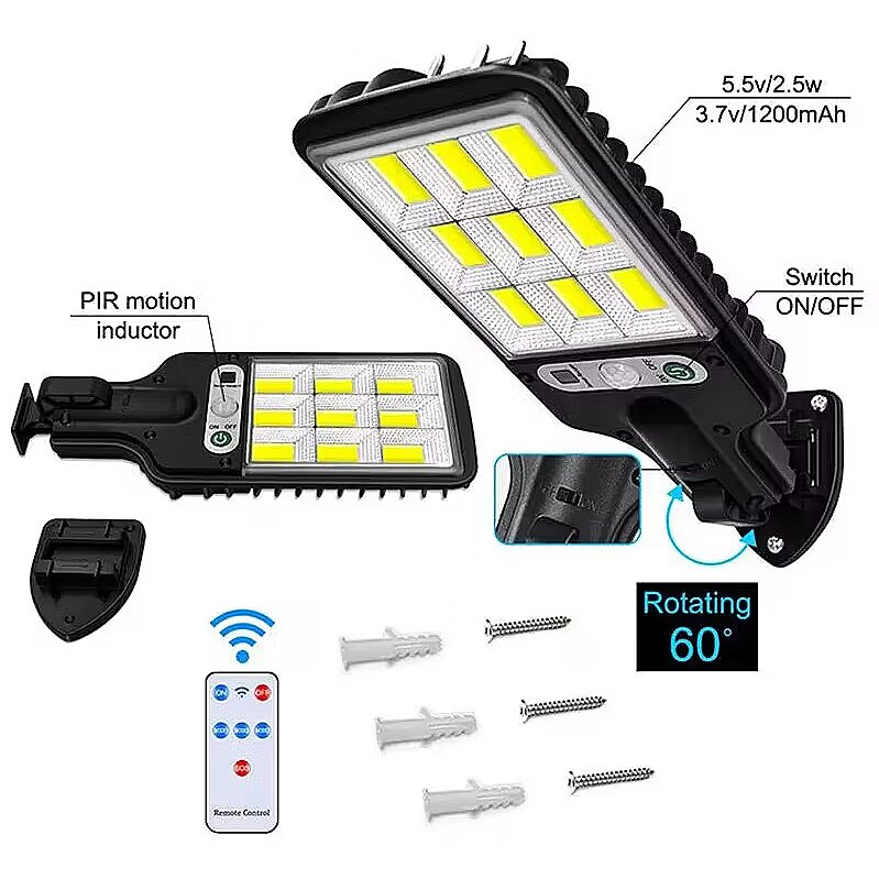 description_en - Street lamp with protection against moisture and dust IP65. Built-in 1200mAh battery. Bright COB LEDs will provide complete lighting in nature or in the countryside. Operating time with a fully charged battery is 7-8 hours. Includes: flashlight, mounting kit, remote control.