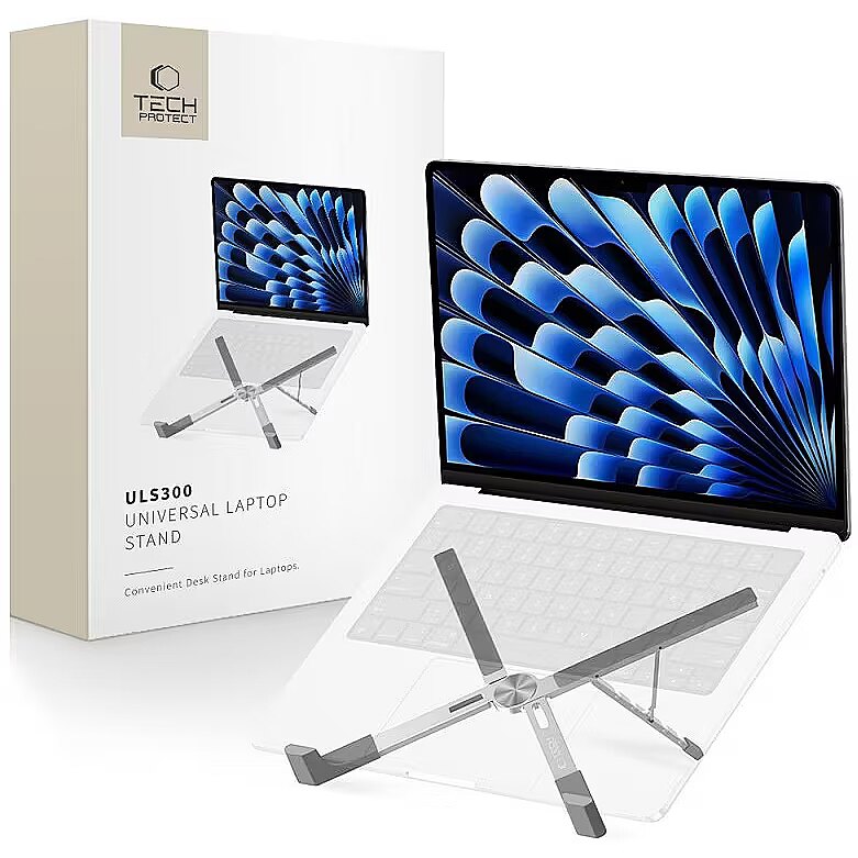 description_en - The Tech-Protect ULS300 laptop stand is the perfect solution to improve workplace comfort and ergonomics. The 5-step adjustable design allows you to adjust the position of the laptop according to your needs, helping to reduce the strain on the neck and increasing work comfort. In addition, the open design ensures better heat dissipation, preventing the laptop from overheating. The high-quality aluminum alloy base is durable and stable, and the silicone anti-slip pads protect against scratches and keep the laptop firmly in place. Thanks to its foldable design, it can be easily taken anywhere. Folding stand for laptop Fits laptops up to 16 inches Allows you to raise the computer at different angles Ensures ergonomic and more comfortable work with the computer Ensures comprehensive air circulation around the computer