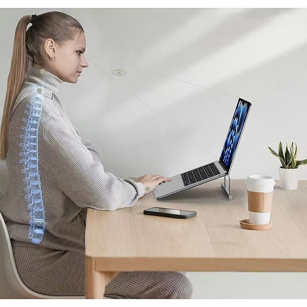 description_en - Tech-Protect ULS100 laptop stand is the perfect solution to improve workplace comfort and ergonomics. It raises the laptop screen higher, helping to reduce strain on the neck and increase working comfort. In addition, the open design ensures better heat dissipation, preventing the laptop from overheating. The stand is made of high-quality aluminum ensuring durability and stability. The adjustable design allows it to be used with laptops up to 16 inches A practical stand for a laptop Raises the computer screen, improving workplace ergonomics Allows you to work with a laptop more comfortably Ensures comprehensive air circulation around the laptop