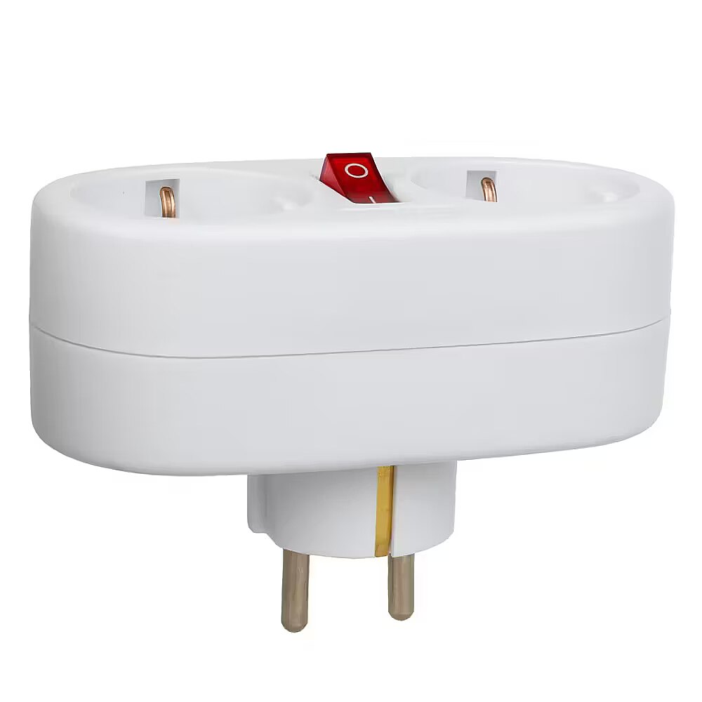 Description - The outlet splitter is a simple, but very useful device that allows you to control the switching on and off of any electrically powered devices that are plugged into it. Place the splitter in an electrical outlet, and then connect to it the devices whose switching on and off you want to control. The splitter is activated by pressing the ON/OFF button. By turning on (or off) the switch, you thereby turn on (or off) each electrical device that is connected to it.
