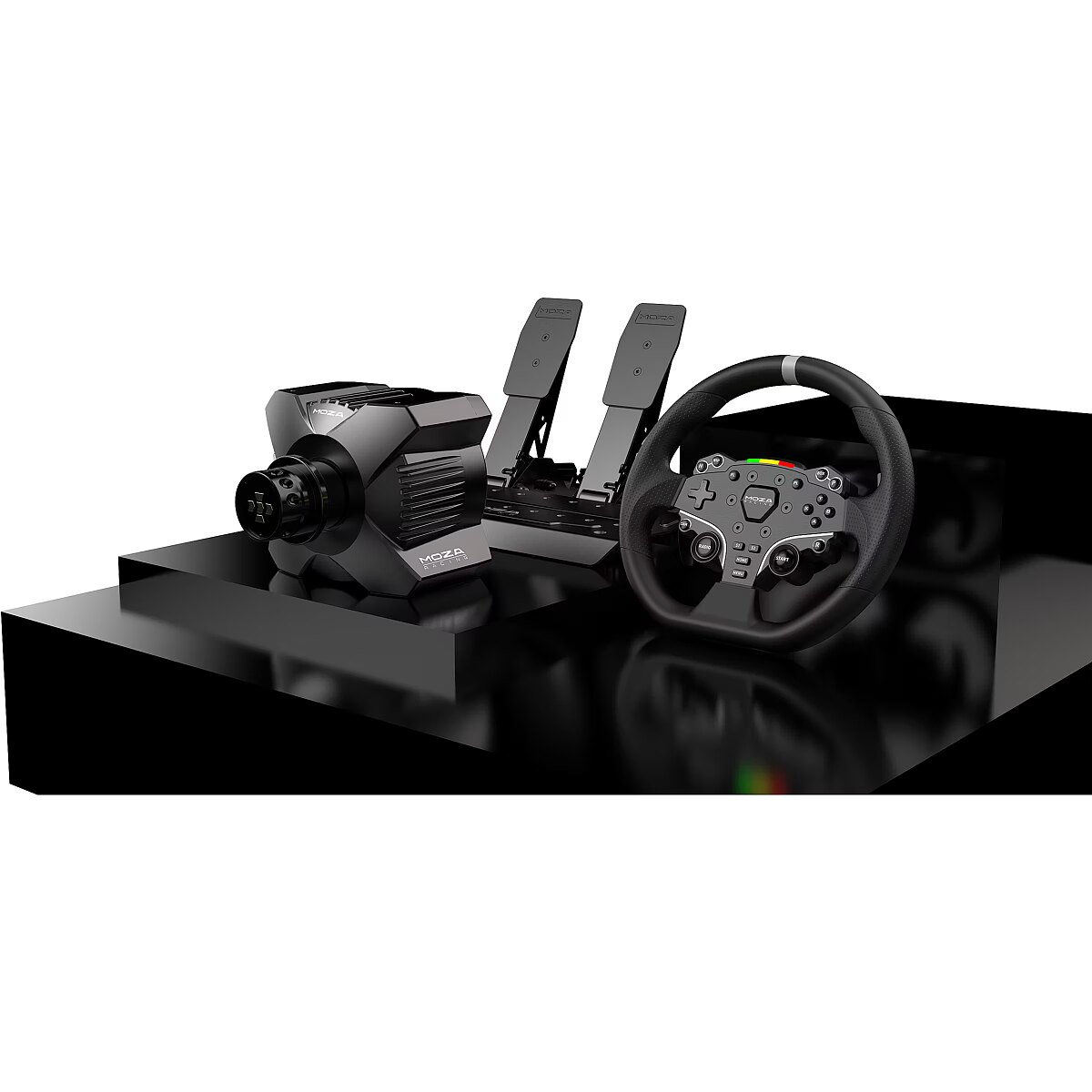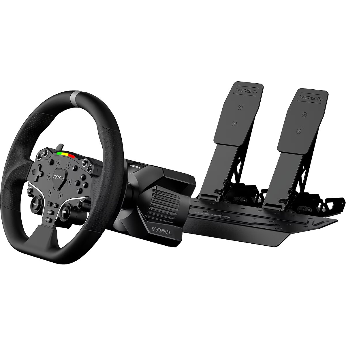 ShortSummaryDescription - Moza Racing R3 Racing Wheel and Pedals for PC, Steering wheel + Pedals, PC, D-pad, Menu button, Mode button, Pause/Set button, Start button, Digital, Unlimit, Direct drive