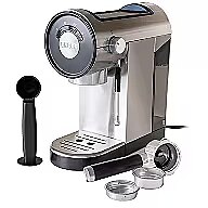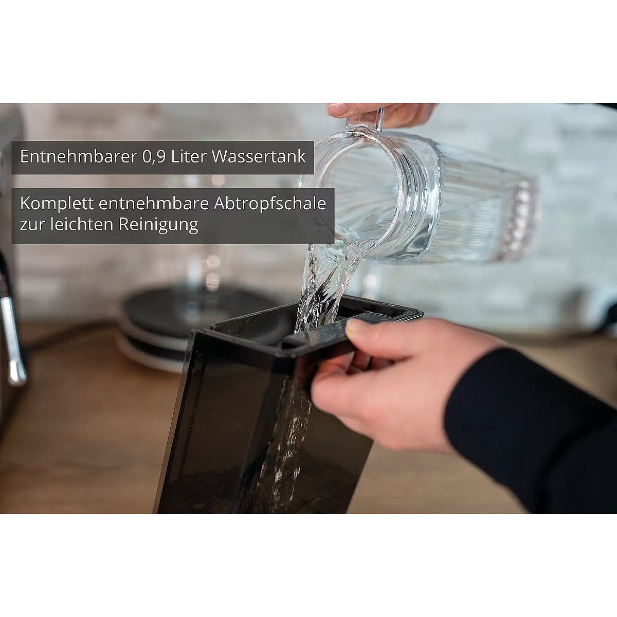 LongDesc - Our compact stainless steel espresso portafilter machine with up to 20 bar pressure produces perfectly tempered espresso using the thermoblock heating system.The portafilter is equipped with stainless steel inserts for 1 or 2 cups of espresso. The swiveling milk foam nozzle enables the preparation of various coffee specialties such as cappuccino, latte macchiato or café au lait. Tea can also be prepared very easily using the hot water function.The 0.9 liter water tank and drip tray are removable to ensure easy cleaning.