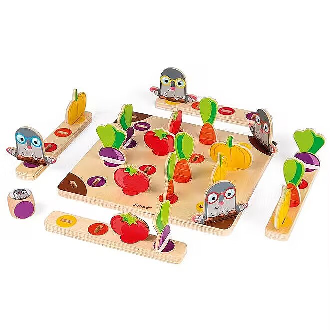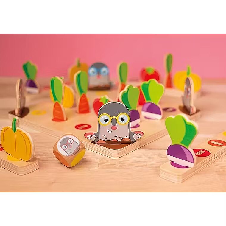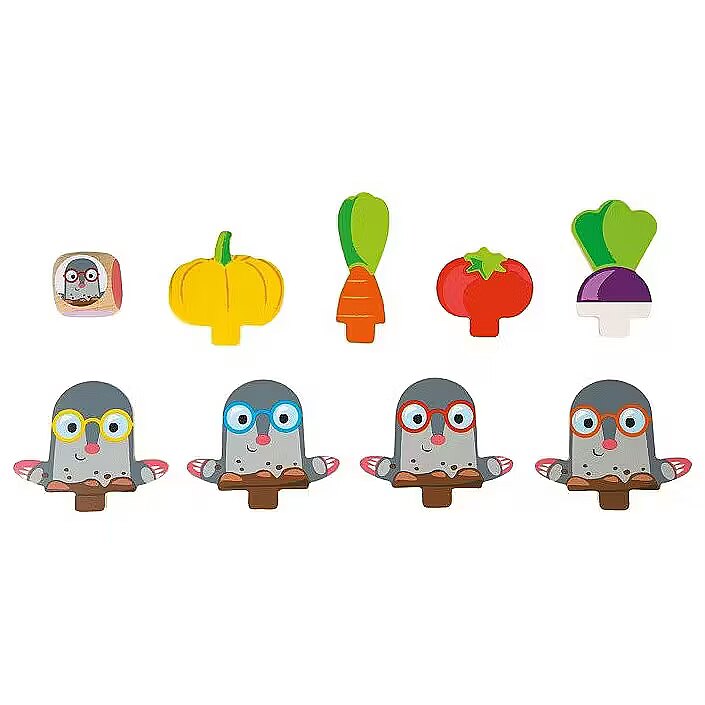 Dane techniczne: Zawartość zestawu - 1 plansza | 4 podstawki | 20 drewnianych elementów | 1 kostka