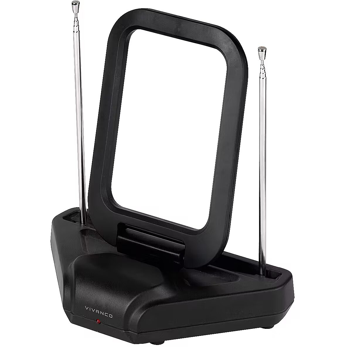 description_en - The Vivanco indoor antenna is designed for indoor use and ensures reliable TV and radio reception for both analog and digital signals. The antenna supports DVB-T and DVB-T2 television standards and DAB+ digital radio, as well as UHF, VHF and FM frequencies, offering a wide range of use with different receiving devices. Adjustable gain allows you to adapt the signal to the reception conditions to achieve the best possible picture and sound quality. The integrated LTE filter reduces interference from mobile networks and helps ensure more stable transmission. The antenna is equipped with two additional telescopic antennas for VHF/FM reception and a 1.2 meter coaxial cable, which makes installation easy and flexible. The integrated power adapter included ensures convenient use without the need for additional devices. The Vivanco indoor antenna is a practical and effective solution for home TV and radio reception.