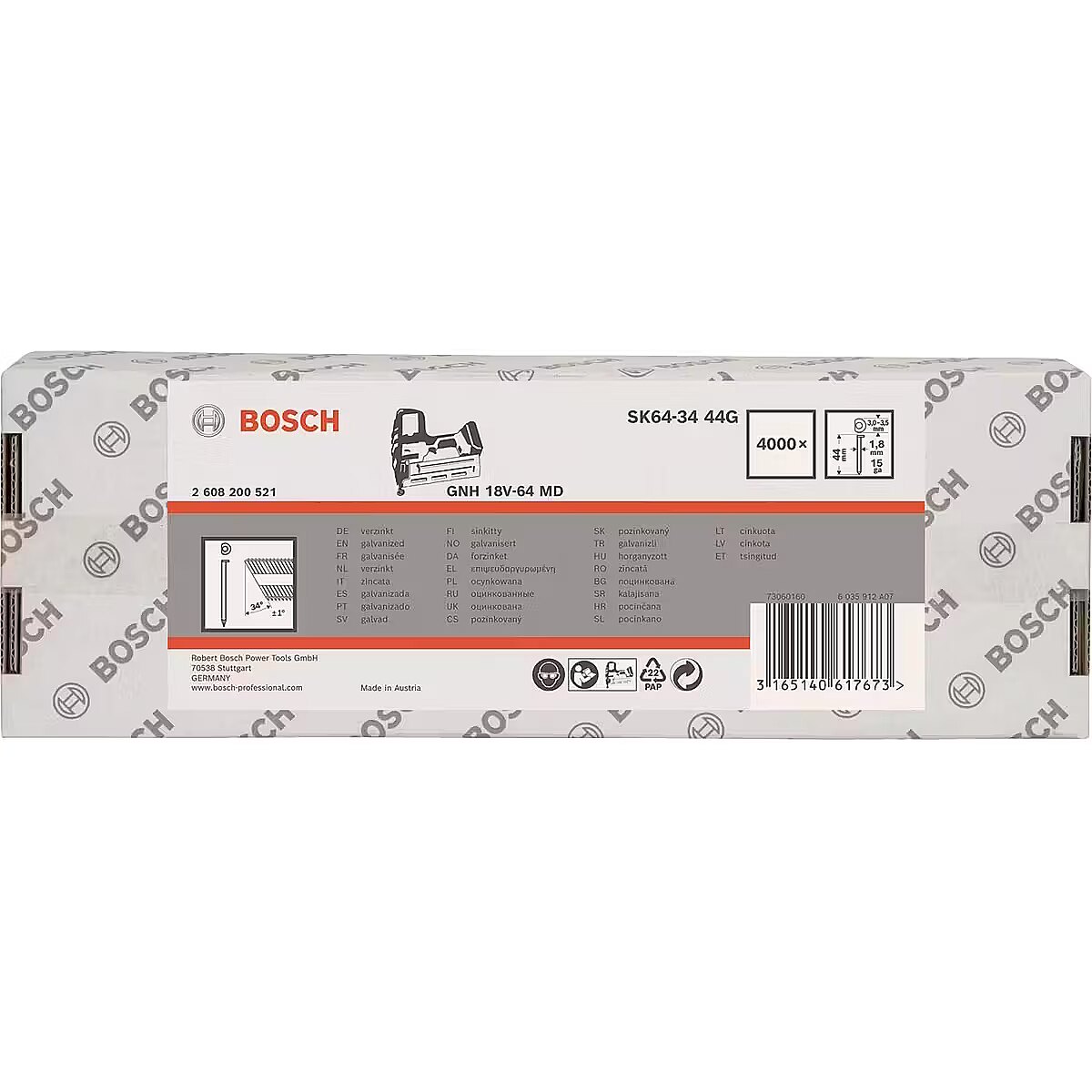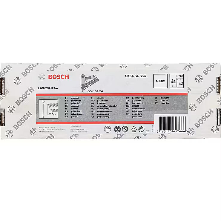 Bosch Bosch Professional countersunk head nails SK64-34 44G, 34° / 1.8mm / 15ga 4,000 pieces, for cordless and pneumatic nailers