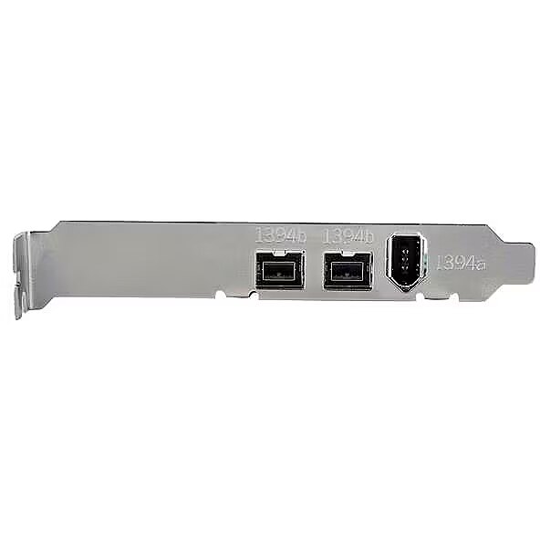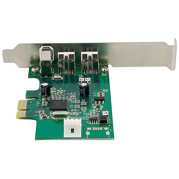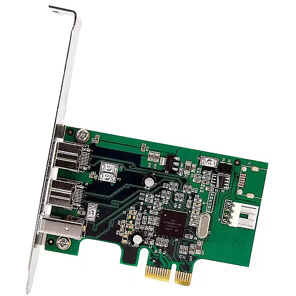 LongDesc - Add 2 native FireWire 800 ports to your computer through a PCI Express expansion slotThis 3 Port PCI Express FireWire adapter card can be installed in a PCI Express slot to add two IEEE1394b (FireWire 800 - 9 pin) ports and one IEEE1394a (FireWire 400 - 6 pin) port, providing broad compatibility with a wide range of FireWire devices (e.g. DV camcorders, external hard drives, digital cameras, etc.).The 2b, 1a card features a native (single chip) PCI Express chipset - resulting in faster, more reliable and cost effective performance than expansion cards that utilize a "bridge" chip.The StarTech.com Advantage