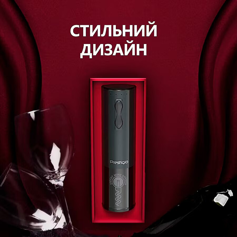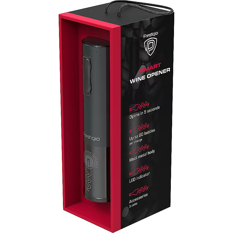 Prestigio Bolsena, Electric wine opener with Prestigio Logo, aerator , vacuum preserver, Black color