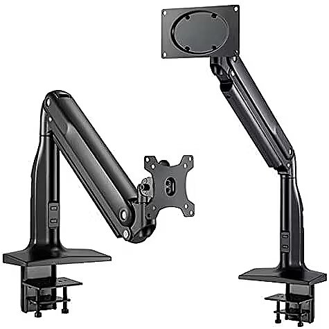Technical_details - HA gas lift arm single, monitor mount a monitor of 43 - 109 cm (17 - 43”) . The construction is made of high-quality, durable aluminum. Fully mobile thanks to extremely smooth-running gas springs that can be adjusted to the weight of the device. This allows the monitor to be moved effortlessly, almost floating, into any desired position with just the tip of your finger. The angle of inclination is variably adjustable with ± 45°. In addition, a stepless change of the screen orientation is possible. The VESA universal mount can be equipped with 75 x 75 and 100 x 100 mm. The cables of the built-in components can be routed along the swivel arms and neatly fixed with clips. There is a choice of clamp or screw mounting possible through the table top. Both versions are included in the scope of delivery. The surface of the aluminum bracket is protected by a Impact and scratch-resistant powder coating finished in black. Type: Monitor Mount Color: Black EAN: 4250058587022 Manufacturer number: 8702 To hold/attach: from | televisions, monitors To hold/attach: on / on | tables Suitable for: Displays Fastening type: screw fastening Max dimensions: screen size | 43 - 109cm (17 - 43") Material: aluminum, plastic VESA standards: 75x75mm, 100x100mm Ergonomics: angle of inclination | From +45 ° to -45 ° Ergonomics: Tiltable | Yes Ergonomics: Rotatable | ±180° Ergonomics: Swiveling | ±90° Ergonomics: Height adjustable | From 151mm - 658mm Load capacity: 18 kg (1 x 18 kg) Number of supported devices: 1 Feature: Concealed cable routing