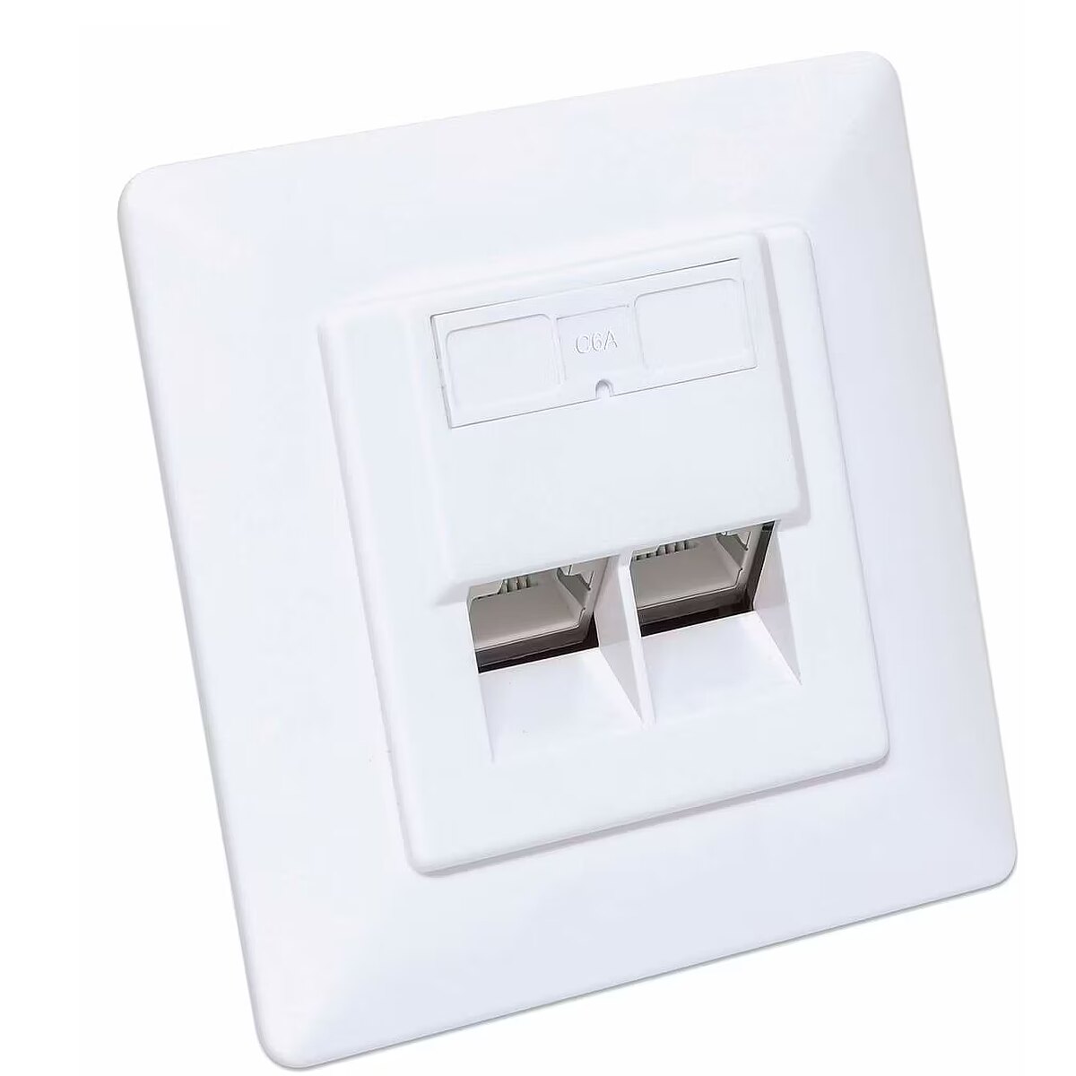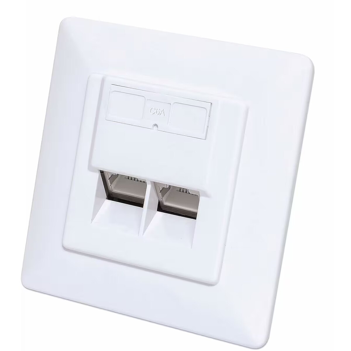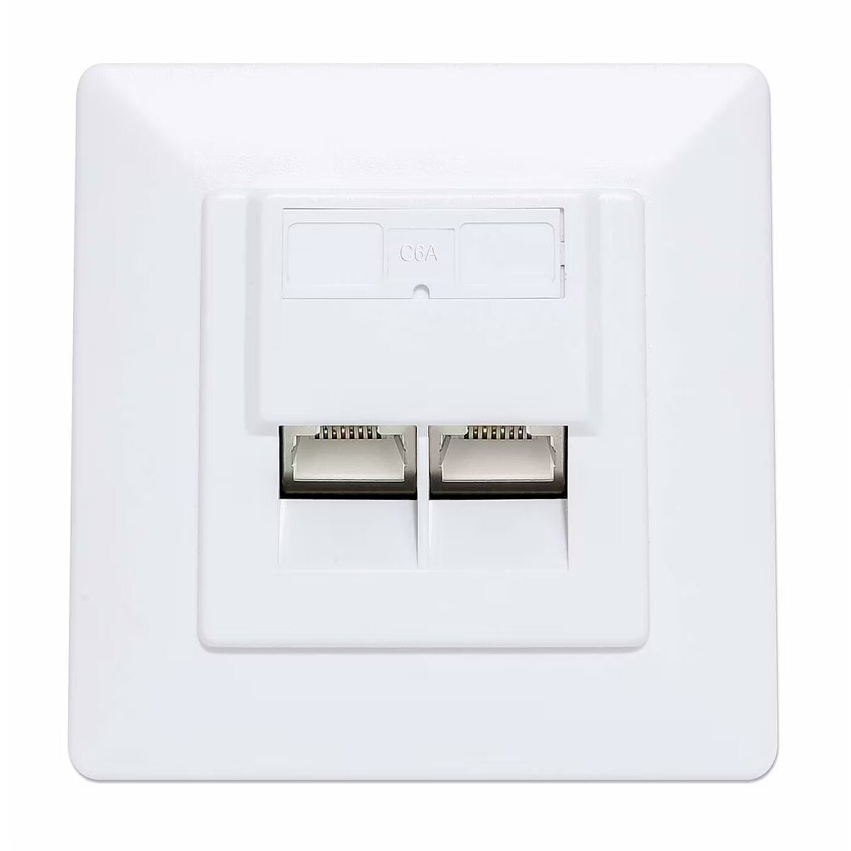 ProductName - 2-Port Cat6 10G Shielded RJ45 Wall Plate Flush Mount with Faceplate, STP, Signal White RAL9003