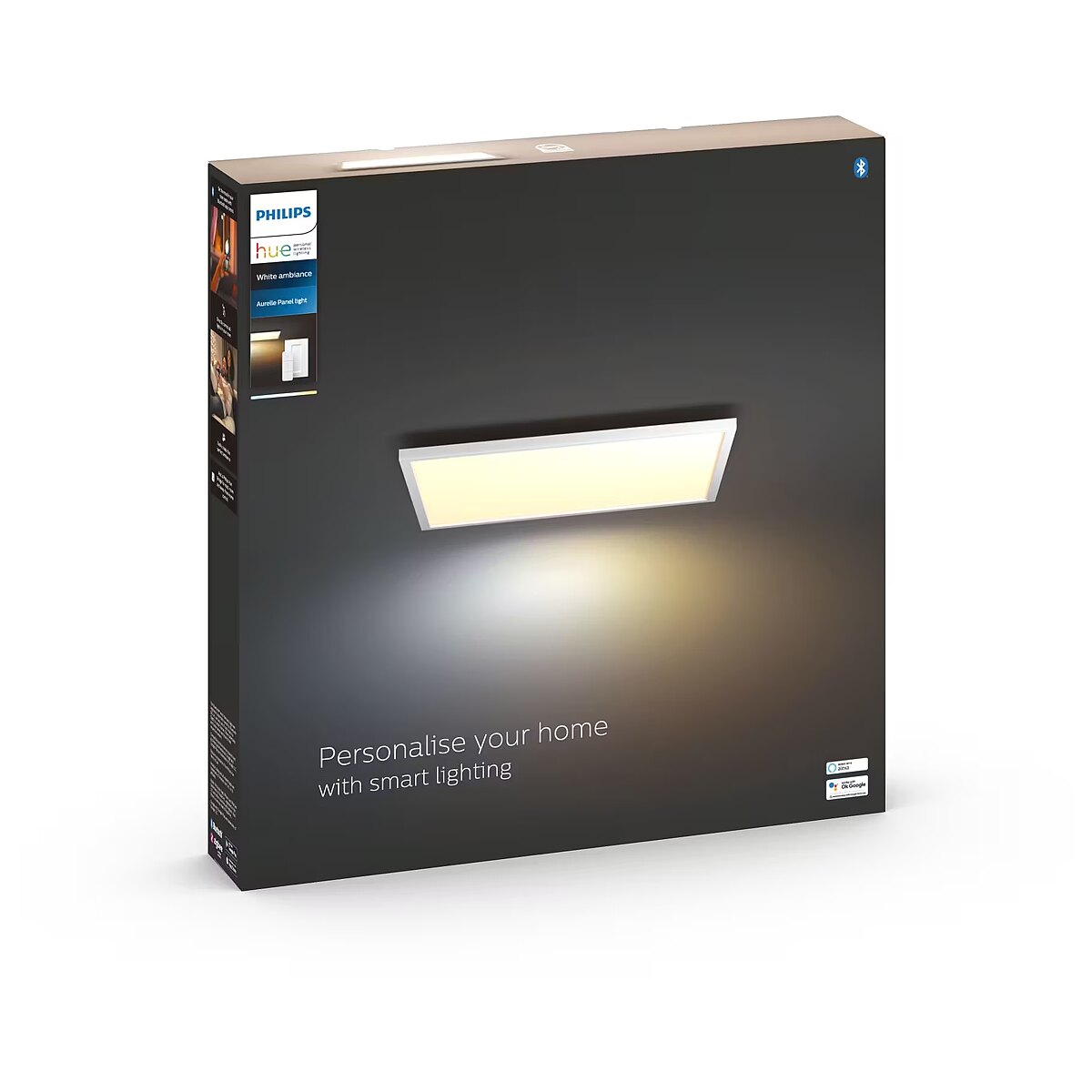 LongSummaryDescription - Philips Hue White ambience Aurelle Square Panel Light. Type: Smart ceiling light, Interface: Bluetooth, Product colour: White. Energy efficiency class: F, Power source type: AC, Input voltage: 220–240 . Width: 600 mm, Depth: 600 mm, Height: 46 mm. Package width: 120 mm, Package depth: 700 mm, Package height: 705 mm. Quantity per pack: 1 pc(s)