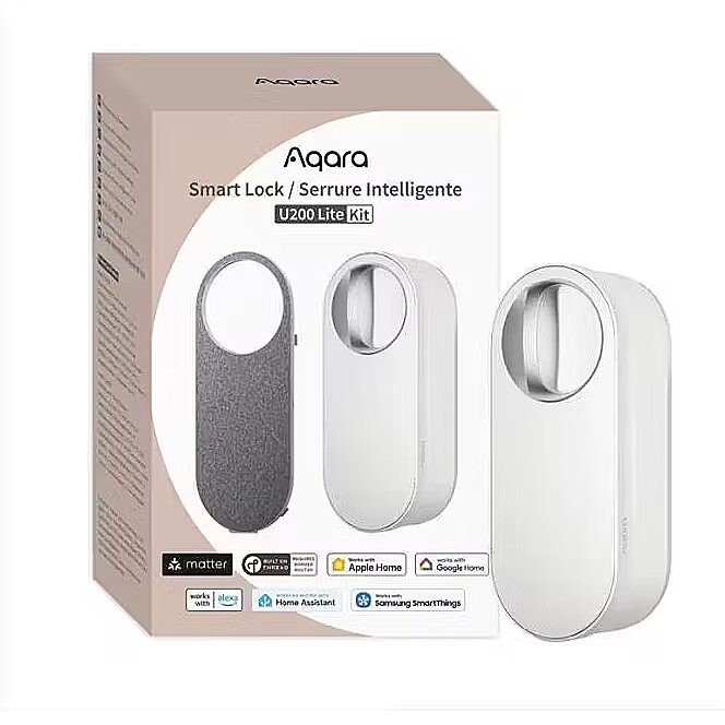Description - Aqara Smart Lock U200 Lite Kit Upgrade your door with the Aqara Smart Lock U200 Lite Kit – a keyless, drill-free smart lock with Matter over Thread support, app and NFC unlocking, auto-lock, and easy installation. Matter over Thread Support: Enjoy a truly seamless smart home experience with the Aqara U200 Lite, which works out of the box with leading platforms like Apple Home, Google Home, Amazon Alexa, SmartThings, Home Assistant, Homey, and more*. Built on the low-power Thread protocol, it significantly reduces battery consumption, so you won’t need to change batteries often. Thanks to Thread’s self-healing mesh network, the lock communicates directly with nearby devices—ensuring fast, stable, and reliable performance. Flexible Unlock Methods: The Aqara U200 Lite supports Bluetooth proximity unlock via the Aqara app, decreasing the need for a mechanical key. You can touch your phone to the complimentary NFC Sticker Card to quickly launch the Aqara app or just open the app to access the unlock button on your phone. Additionally, the U200 Lite supports remote unlocking through the app*, which is convenient when you’re away from home. It’s also compatible with Siri and Alexa voice commands, allowing for seamless smart unlocking experiences*. Rechargeable Li-ion Battery: The U200 Lite is equipped with a 2000mAh rechargeable lithium battery that can last up to 6 months on a single charge, requiring minimal maintenance. It features a low battery alert function, giving users peace of mind during use. The device comes with a USB-C charging port for faster charging speeds. Auto Lock with Ease: Thanks to the built-in gyroscope, the U200 Lite alerts you with an audible reminder if you forget to close the door, and automatically locks the door once it’s closed.** Quiet Mode for Nighttime Use: Seamless smart home integration meets nighttime convenience with customisable speed settings. Choose between Quiet, Standard, and Fast modes to suit any time of day, ensuring peaceful operation when you need it most.*** Easy Installation & Great Compatibility: The lock easily fits over your existing door lock, requiring no complex installation or modifications. Installation is simple as long as your current cylinder has an emergency function***, allowing the lock to be mounted directly over the existing cylinder. The U200 Lite is compatible with Euro profile and select Scandi cylinders. Expanded Functionality: The Aqara U200 Lite features a pull spring function that automatically retracts the door latch upon unlocking, allowing you to open the door without touching it. This is ideal for situations where your hands are full or when you want improved hygiene. It’s especially useful for inward-opening doors or those without traditional handles, simplifying entry. And simply turn the knob approximately 30 to 60 degrees, and the lock will automatically lock or unlock.**** Complimentary Eco-Friendly Replaceable Cover: Stylish German eco-friendly replaceable cover (black cover with black lock/gray with white lock) that effortlessly change to match your sophisticated home décor. Natural, fashionable, and perfectly customizable for your refined living space.