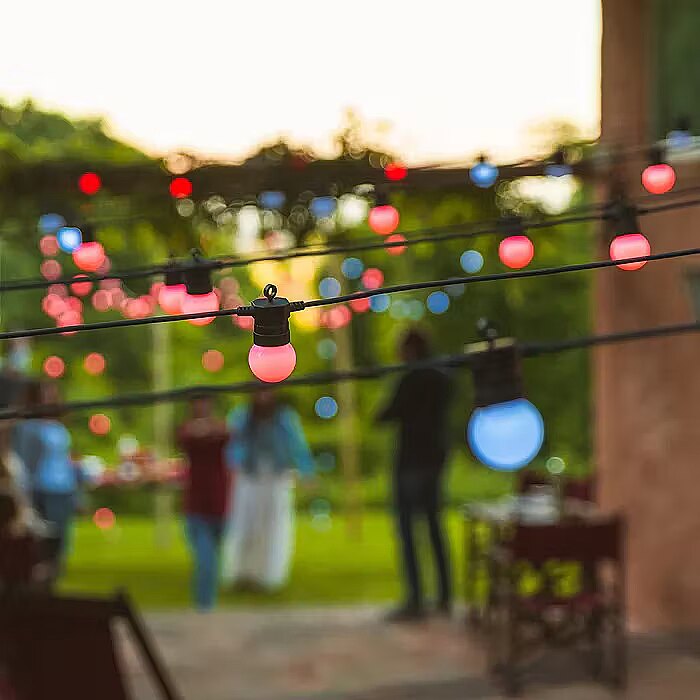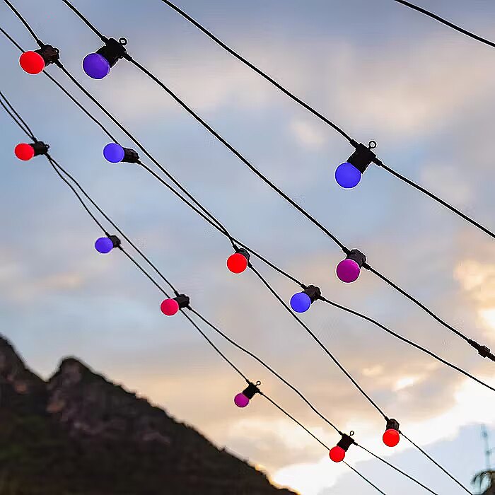 Twinkly Festoon tulede 14,5 meetri pikkune juhe (millest 10 meetrit on valgustusega) annab sulle vabaduse valida, kuidas ja kus sa tuled riputad. 20 matt G45-kujulist valgustit