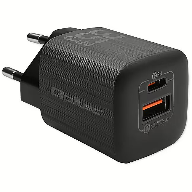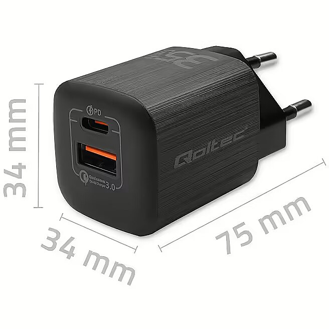 Name - Qoltec 35W GaN ULTRA | 5-20V | 2.25-3A | 1 x USB typ C PD | 1 x USB QC 3.0 | Czarna