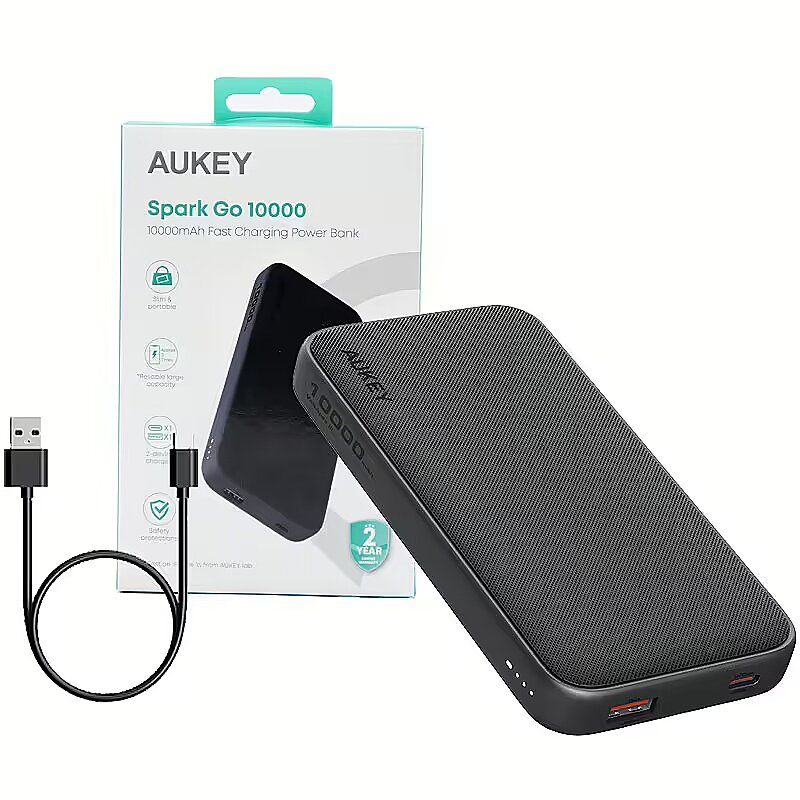 Description - Power bank AUKEY PB-Y46 Spark Go + kabel AUKEY Quick Charge USB-C - USB-A 30cm Powerbank Aukey został wyposażony w dwa gniazda: USB-A i USB-C. Umożliwia ładowanie dwóch baterii jednocześnie. W powerbanku zastosowano szereg zabezpieczeń, które chronią baterię w trakcie ładowania. To między innymi zabezpieczenie przed przeładowaniem, przepięciami oraz przegrzaniem. Szybkie ładowanie przez USB C: dzięki wejściu 5 V/3 A możesz współpracować z iPhonem, urządzeniami z systemem Android i wszystkimi innymi urządzeniami zasilanymi przez USB C. Dwa wyjścia: Łącząc jedno wyjście USB A i jedno wyjście USB C o maksymalnej mocy 15 W 3A ta przenośna ładowarka akumulatorów może ładować dwa urządzenia jednocześnie z maksymalną prędkością. Mocne ładowanie w podróży: Wystarczająca moc, aby zapewnić 2,6 ładowania iPhone'a 15, 1,8 pełnego ładowania Galaxy S10 i 1,3 ładowania iPada mini 5 Certyfikowane bezpieczeństwo: Wielokrotna ochrona przed nadmiernym prądem, przegrzaniem i przeładowaniem, która chroni Ciebie i Twoje urządzenia Szybkie ładowanie w każdej sytuacji Aukey PB-Y46 Spark Go to powerbank, który zapewnia szybkie ładowanie dzięki technologii USB-C. Dzięki wejściu 5 V/3 A możesz naładować swoje urządzenia w rekordowym tempie, a sam powerbank naładuje się szybciej niż kiedykolwiek wcześniej. Niezależnie od tego, czy używasz iPhone'a, urządzenia z Androidem, czy innego sprzętu, ten powerbank zapewni Ci niezawodne źródło energii. Ładuj wiele urządzeń jednocześnie Z Aukey Spark Go możesz naładować aż 2 urządzenia jednocześnie. Dzięki dwóm wyjściom USB-A i USB-C oraz maksymalnej mocy 15 W masz pewność, że wszystkie Twoje sprzęty będą gotowe do działania. To idealne rozwiązanie na podróż, gdy potrzebujesz naładować więcej niż jedno urządzenie. Moc na długie podróże Powerbank o pojemności 10000 mAh daje Ci pewność, że nie zabraknie energii w najważniejszych momentach. Możesz liczyć na 2,6 pełnego ładowania iPhone'a 15, 1,8 ładowania Galaxy S10 i 1,3 ładowania iPada mini 5. Bez względu na to, gdzie się znajdujesz, masz wystarczająco mocy, aby utrzymać swoje urządzenia na chodzie. Bezpieczeństwo, na które możesz liczyć Aukey Spark Go został wyposażony w zaawansowane systemy ochrony. Powerbank zabezpiecza Twoje urządzenia przed nadmiernym prądem, przegrzaniem i przeładowaniem. Możesz być spokojny, wiedząc, że Twoje sprzęty są zawsze bezpieczne podczas ładowania. Elegancki i praktyczny design Smukła i lekka konstrukcja Aukey Spark Go sprawia, że jest on nie tylko stylowy, ale również wygodny w użyciu. Minimalistyczny wskaźnik LED pokazuje poziom naładowania, a jego kompaktowa forma sprawia, że z łatwością zmieści się w kieszeni czy torbie, zawsze będąc pod ręką, kiedy go potrzebujesz.