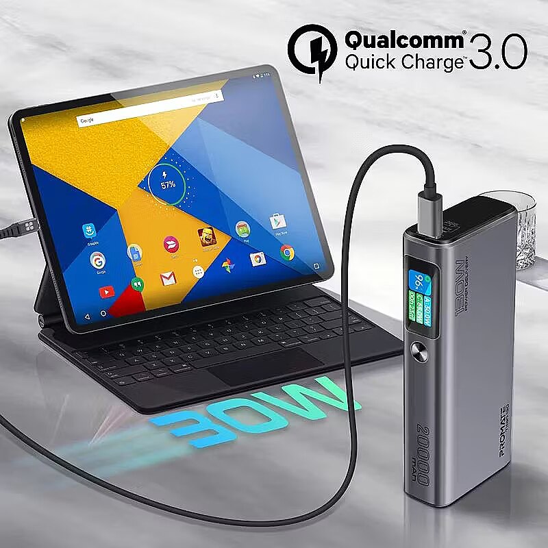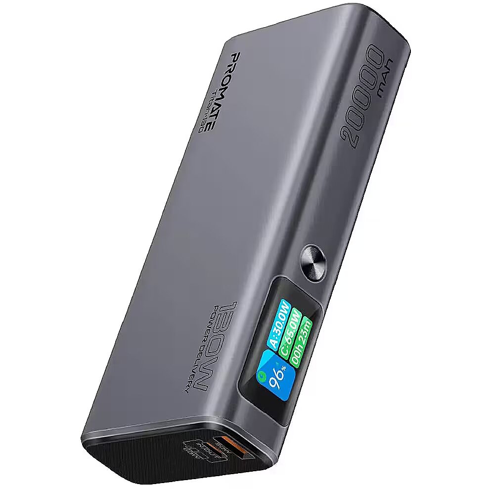 description_en - Titan-130 from Promate is a powerful 20,000 mAh power bank with support for 20W Power Delivery and 30W Quick Charge 3.0 , it will quickly charge your devices. And the metal case and LED display will add practicality in everyday use.