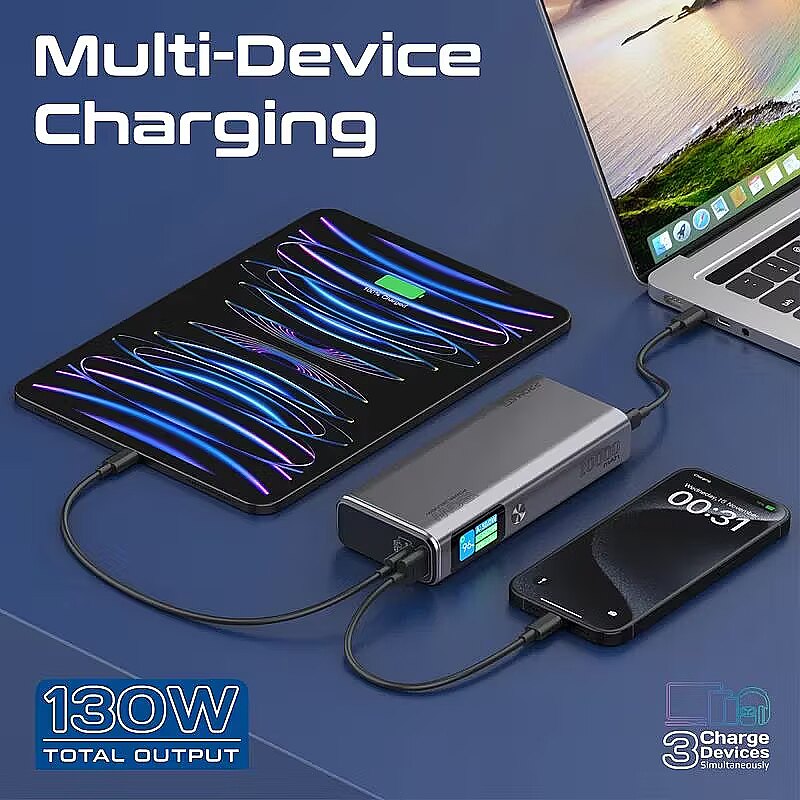 3 in 1 : Charge 3 devices simultaneously with a total power of up to 130 W.