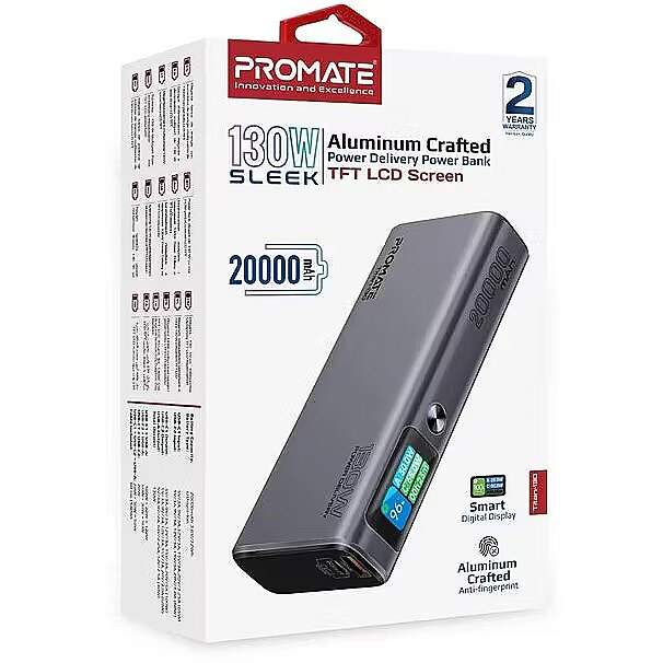 description_ru - Titan-130 от Promate - мощный повербанк на 20 000 mAh с поддержкой 20 Вт Power Delivery и 30 Вт Quick Charge 3.0, быстро зарядит твои устройства. А металлический корпус и LED дисплей добавят практичности в повседневном использовании.