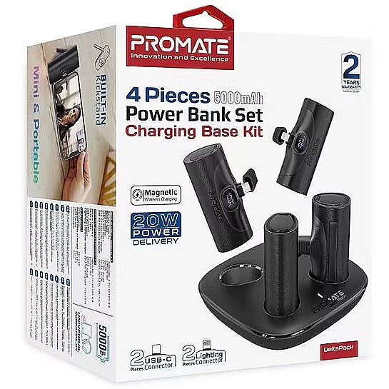 title_en - Promate DeltaPack Battery Set 4x 5000mAh / USB-C PD 20W / Lightning