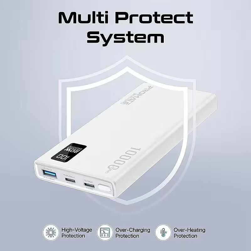 Safety: Built-in Smart IC chip will protect the power bank and devices connected to it from overheating, voltage surges, short circuits and overcharging.