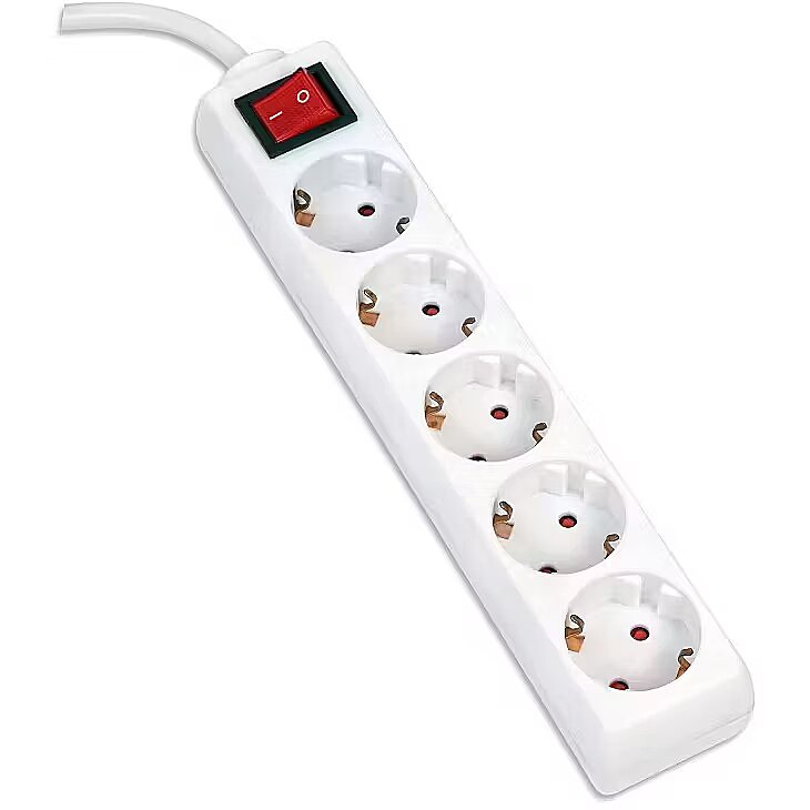 description_en - This 5-socket power strip is a reliable solution when you want to connect multiple devices to the power supply at the same time, while keeping safety in mind. Each socket is equipped with a grounding and child lock, which protects both your home and curious little hands. The durable fireproof plastic casing and built-in switch make it convenient to use and provide extra safety. The extension cord can withstand a load of up to 16A / 3500W, making it suitable for both home and office equipment. In addition, the basic surge protection with varistor (up to 90 J) protects connected devices from unexpected voltage surges, keeping your electronics in working order. 5-socket extension cord Switched design - energy-saving 45° angled sockets Child lock for added safety Cord length: 1.5 meters