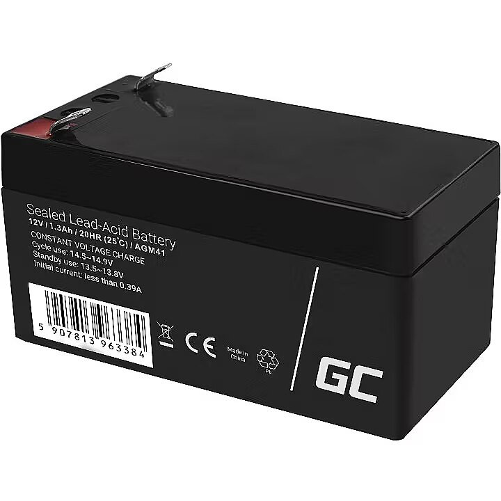 Green Cell AGM VRLA 12V 1.3Ah maintenance-free battery for the alarm system, cash register, toys