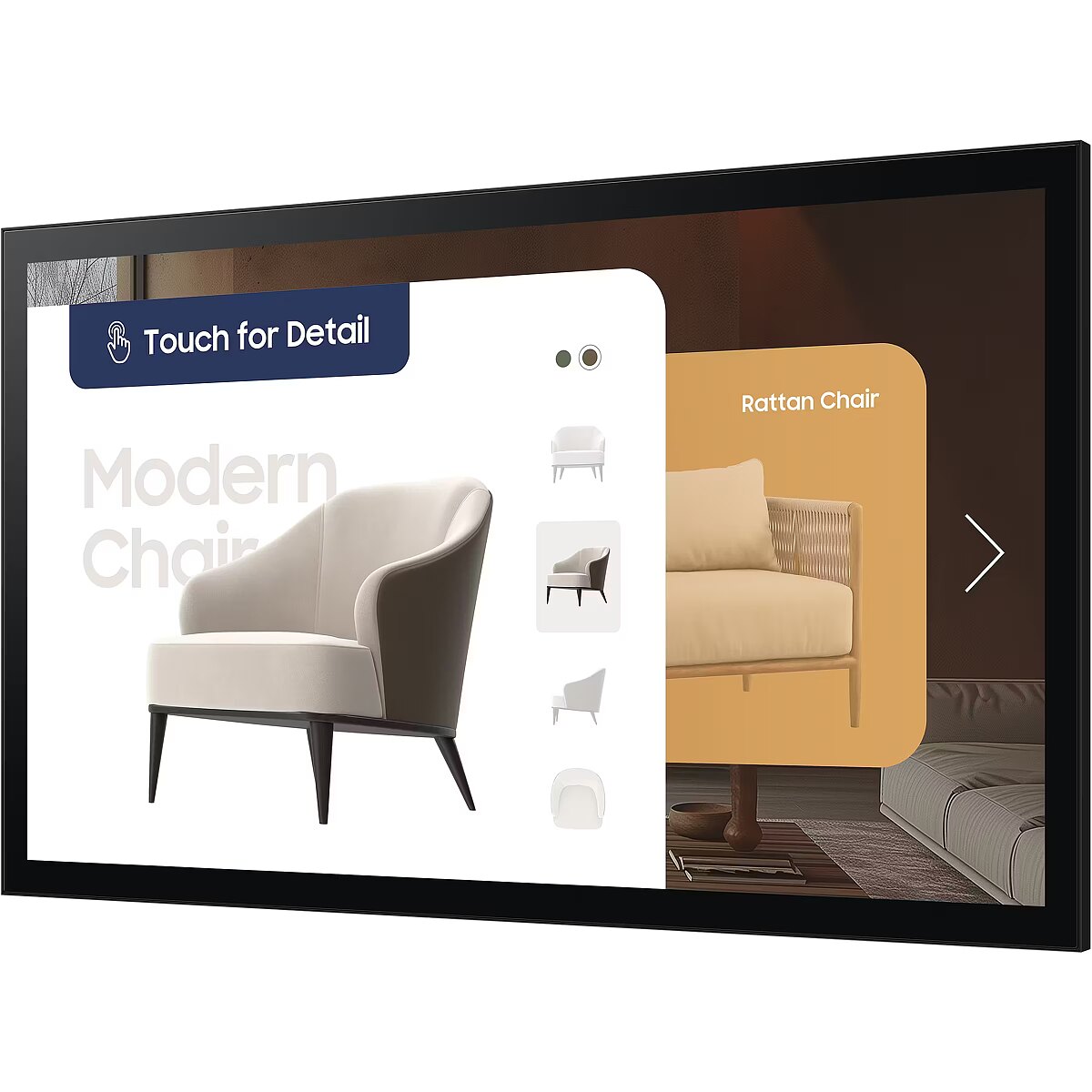 Description - Kompaktowy wyświetlacz. Ulepszony dotyk Zaprojektowany z myślą o ciasnych przestrzeniach biurowych, 32-calowy monitor QM32C-T łączy w sobie kompaktową formę z intuicyjną obsługą dotykową. Jego responsywny, 10-punktowy panel pojemnościowy umożliwia łatwą interakcję, dzięki czemu idealnie nadaje się do wyświetlaczy skierowanych do klienta, systemów orientacji w przestrzeni i kompaktowych systemów digital signage. Smukły, stylowy i wszechstronny sprawdzi się wszędzie tam, gdzie liczy się komunikacja. Ułatw sobie kontakt z klientem dzięki interaktywnemu panelowi dotykowemu. Stworzony z myślą o kompaktowych przestrzeniach biurowych, QM32C-T łączy responsywną obsługę multidotyku z smukłą konstrukcją. Intuicyjna obsługa dotykowa ułatwia nawigację po menu, prezentację produktów i dostarczanie interaktywnych treści. Dzięki obsłudze do 10 punktów dotyku idealnie sprawdza się w miejscach, w których potrzebne są angażujące, interaktywne doświadczenia w ograniczonej przestrzeni. Zachowaj widoczność w trudnych warunkach oświetleniowych. Antyodblaskowy