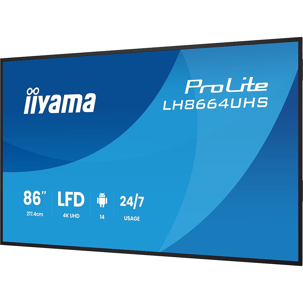 Title - iiyama LH8664UHS-B3AG Signage Display Digital signage flat panel 2.17 m (85.6") Wi-Fi 450 cd/m² 4K Ultra HD Black Built-in processor Android 24/7