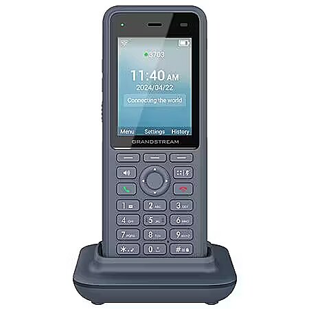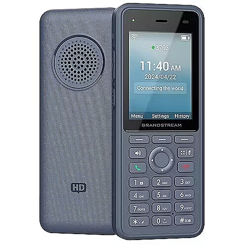 Other features - Funkcjonalność: Dwupasmowy moduł Wi-Fi 6 z wysokosprawną anteną i zaawansowaną obsługą funkcji roamingu. Trzy konta SIP, trzy linie, cztery konferencje. Głos w jakości HD oraz dwa mikrofony z technologią AEC (Echo Cancellation) i tłumienia szumów, a także redukcja hałasów wspomagana SI. Zintegrowany moduł Bluetooth do podłączania zestawów słuchawkowych. Port USB Type-C (szybkie ładowanie). Akumulator 3000 mAh: 10 godzin rozmów, 240 godzin w trybie czuwania. Konfigurowalny przycisk funkcji naciśnij, aby mówić. Dostępne funkcje alarmów: naciśnięcie przycisku, upadek, brak ruchu, bieganie, dźwięki otoczenia. Stopień ochrony IP67 zabezpieczający przed wnikaniem wody i pyłu. Odporność na środki chemiczne używane do czyszczenia. Obudowa z powłoką antybakteryjną.