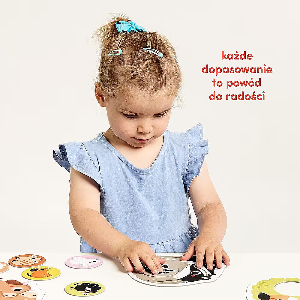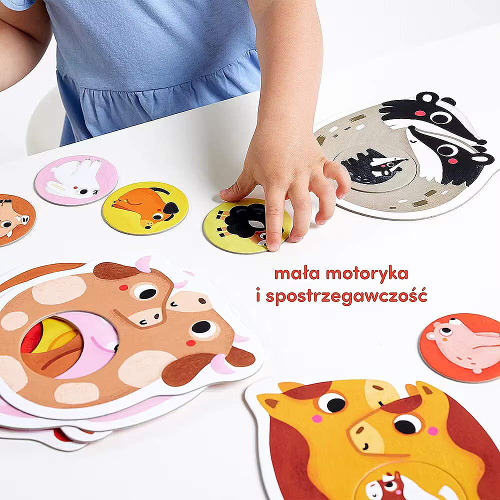 Nazywajcie zwierzÄtka, ich kolory, czÄĹci ciaĹa. Opowiadajcie o tym, co widaÄ na obrazkach, powtarzajÄc nowe sĹownictwo. WymyĹlajcie historyjki o bohaterach ukĹadanek.