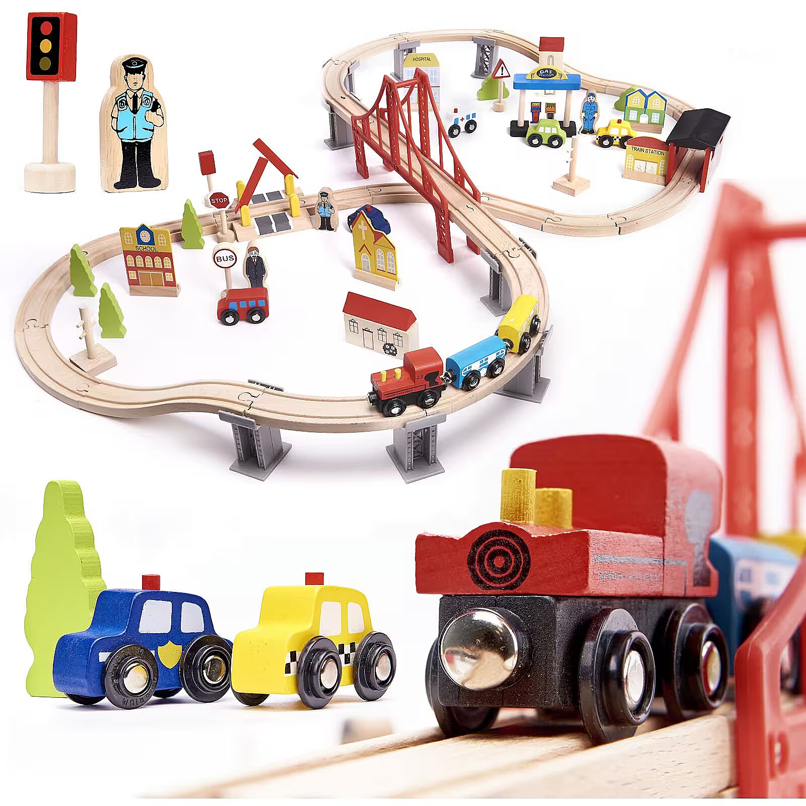 description_ru - Деревянная дорожка для поезда/вагона - настоящее удовольствие для самых маленьких! Красочные элементы, из которых создаются необычные пейзажи. Богатый набор - целых 70 элементов! - дает практически неограниченные возможности для творчества.