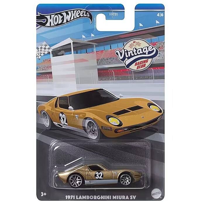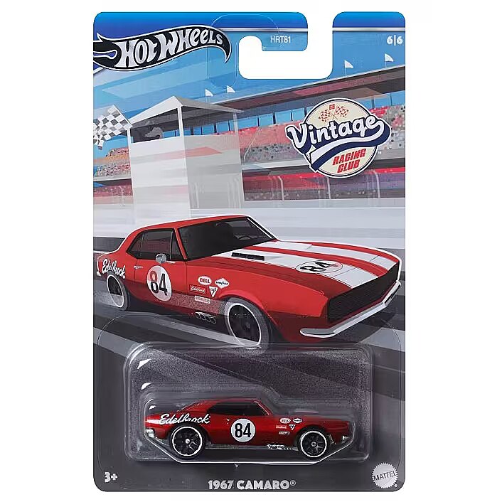 LongSummaryDescription - Hot Wheels 1:64 Scale Die-Cast Vintage Racing Club Car (Styles May Vary). Product type: Car, Recommended age (min): 3 yr(s), Recommended age (max): 99 yr(s), Material: Plastic, Metal, Product colour: Assorted colours