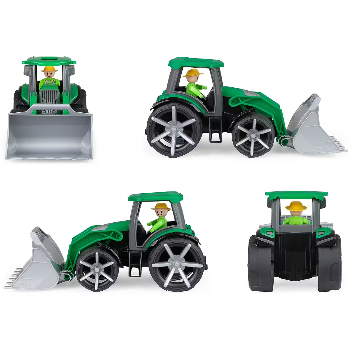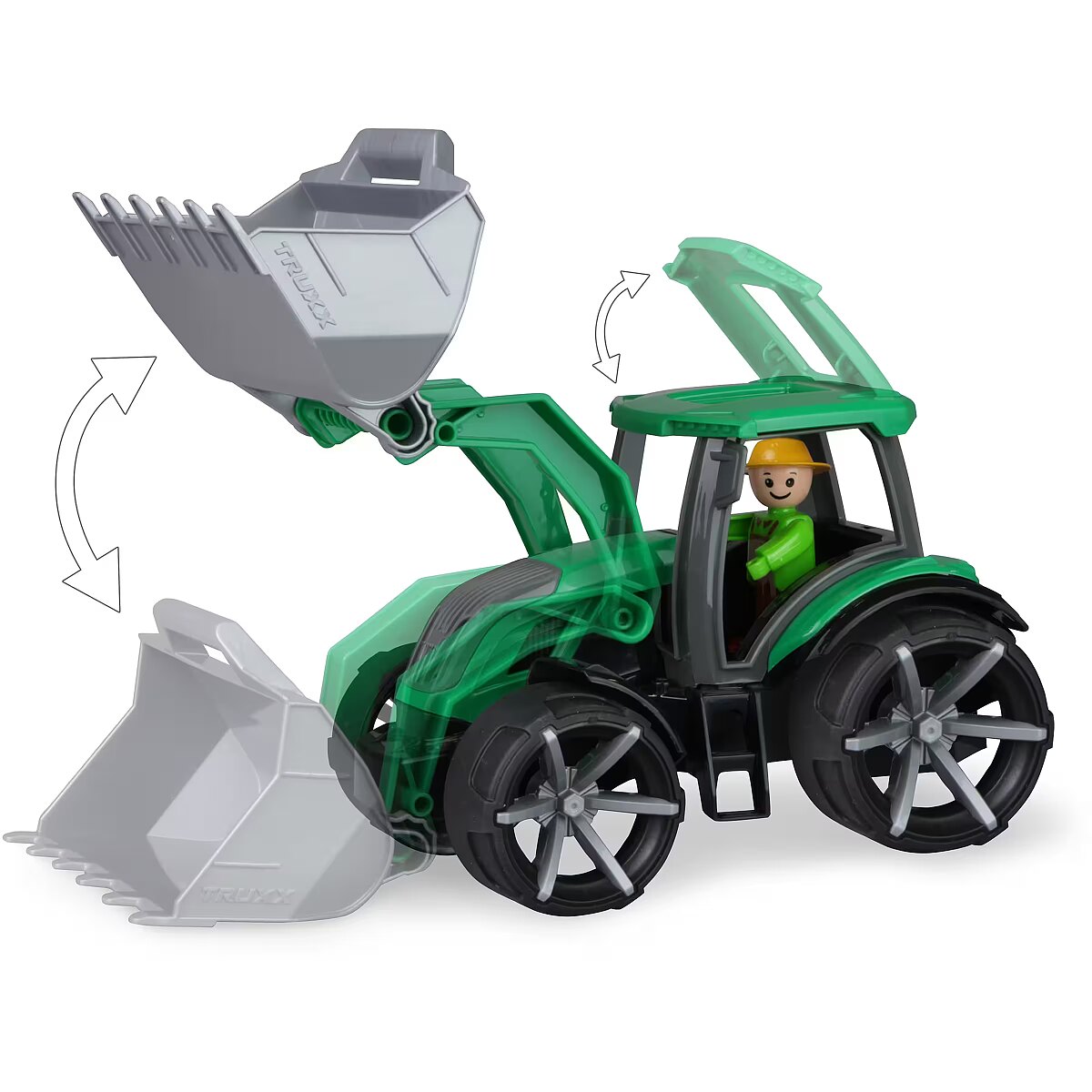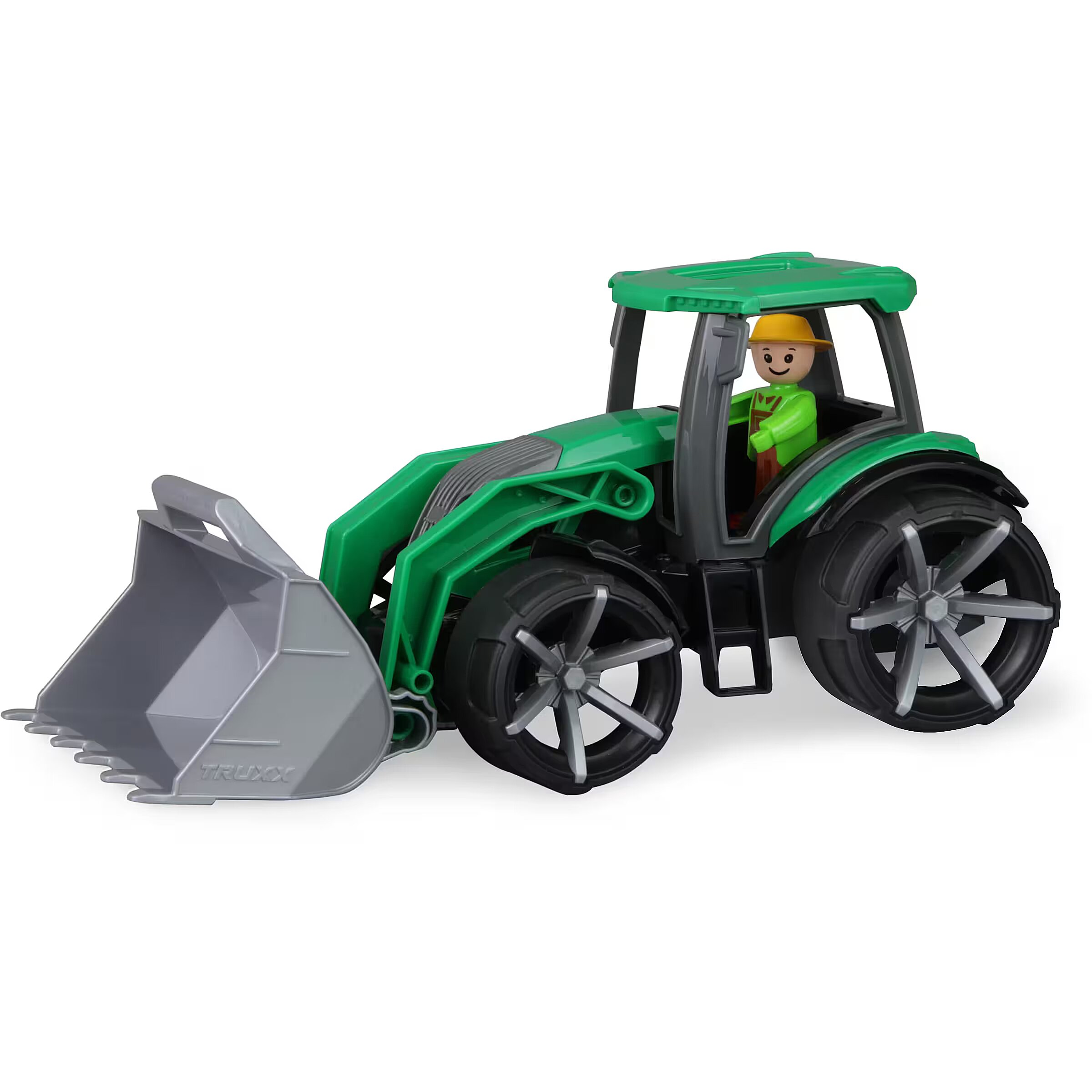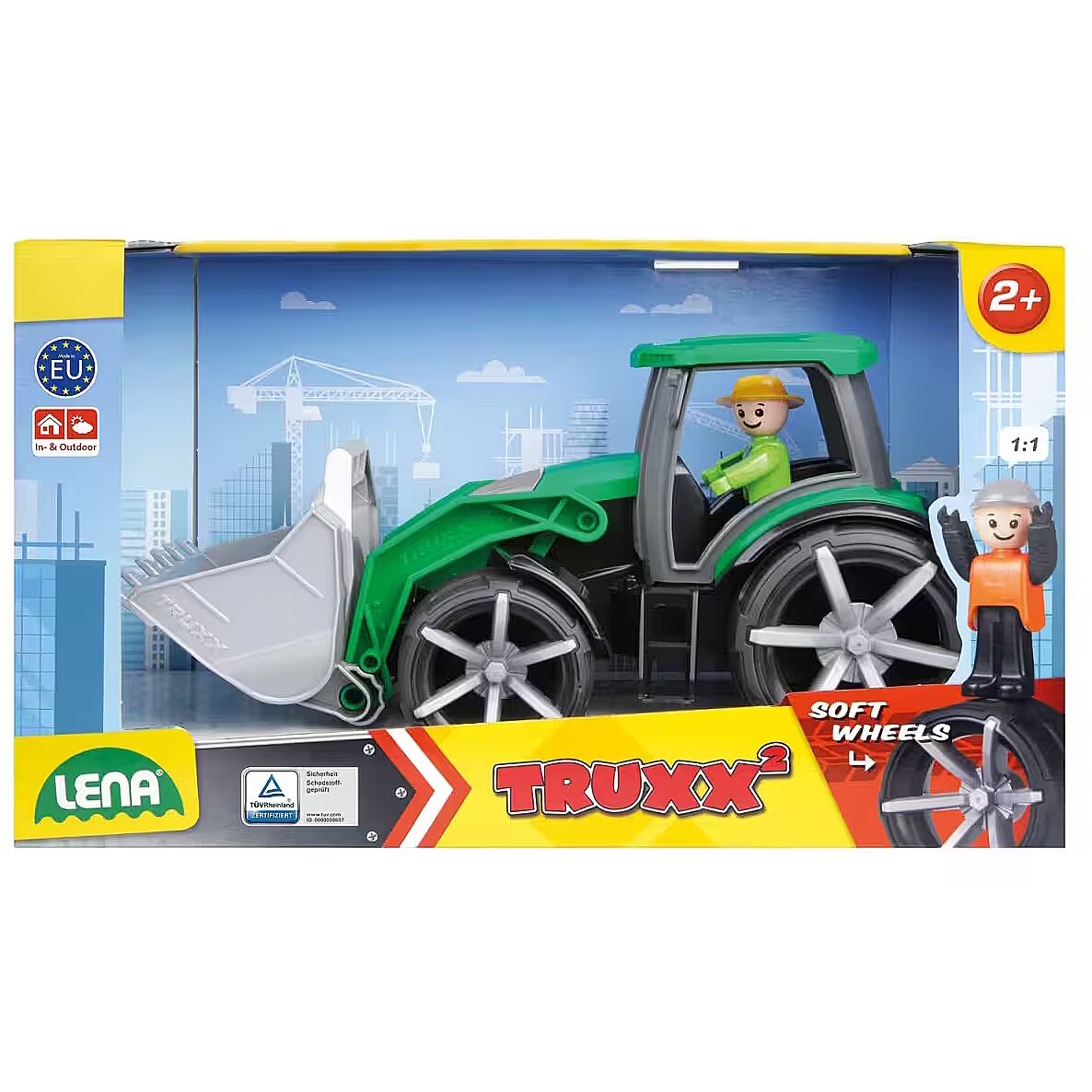 Description - Traktor LENA TRUXX 2 Nadaje się do użycia wewnątrz i na zewnątrz. Odpowiedni dla dzieci powyżej 2 roku życia. Zapakowany w kolorowe pudełko ekspozycyjne. WYPRODUKOWANY W EUROPIE. Certyfikat TÜV. Miękkie, ciche opony 4 mm ocynkowane stalowe osie Otwierana kabina kierowcy Ruchoma łopata z uchwytem Zaczep do przyczepy Figurka