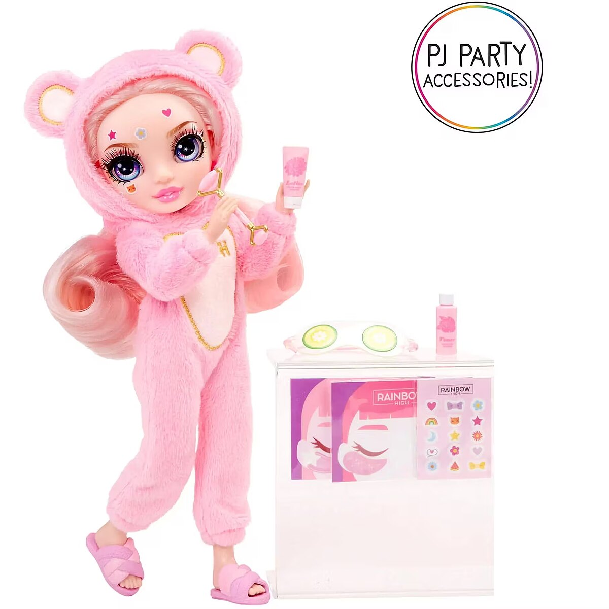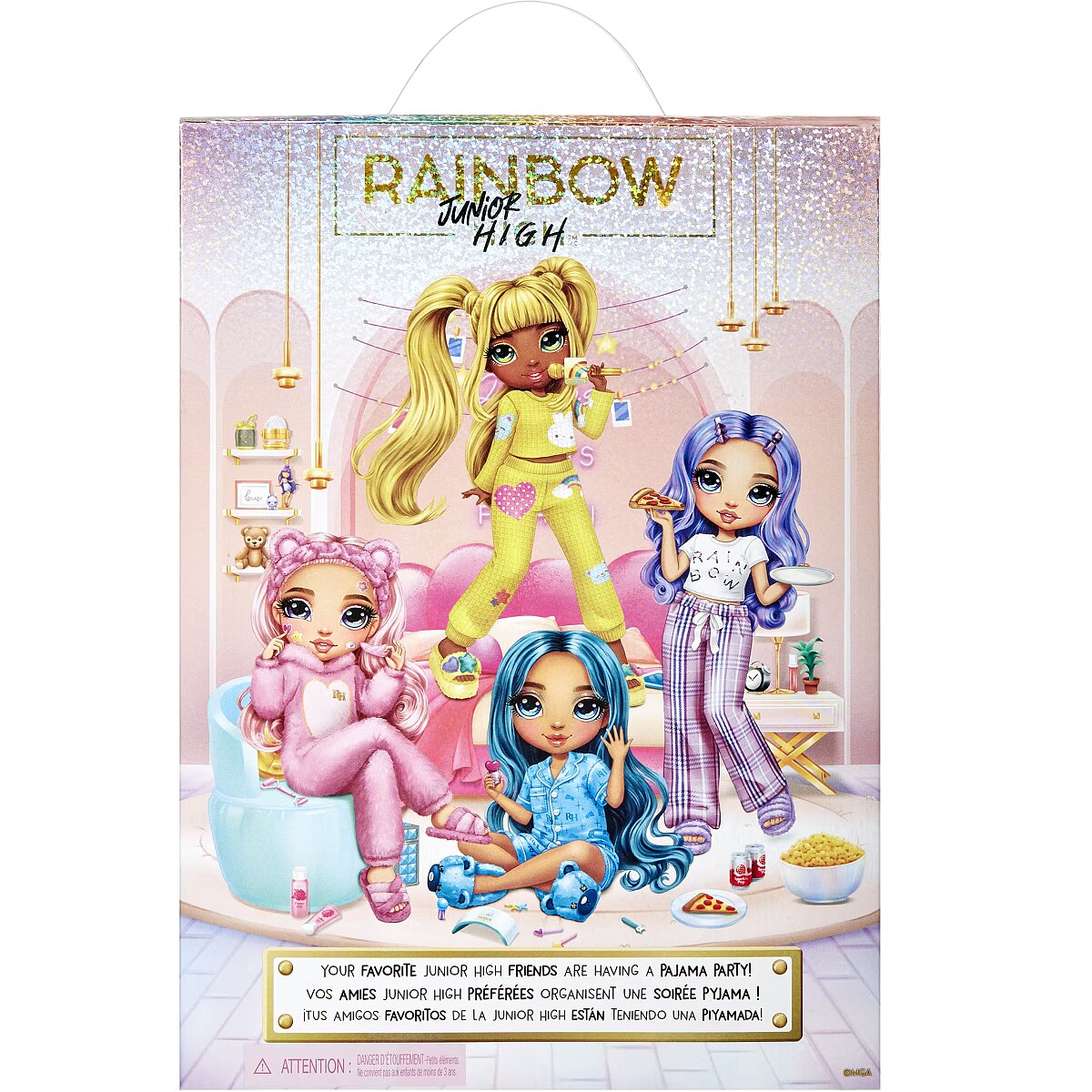 LongDesc - INSPIRES KIDS TO BE CREATIVE: For the first time, your favorite Junior High friends are having an all-night Pajama Party! Each 9” fashion doll comes in their own colorful pajamas, slippers, and the perfect PJ party accessories. This playset will give kids endless joy and imaginative storytelling fun.WATCH ON YOUTUBE and NETFLIX. Watch the new episodes of the Animated Series on YouTube. And catch up from the beginning on Netflix. Just search for ""Rainbow High”