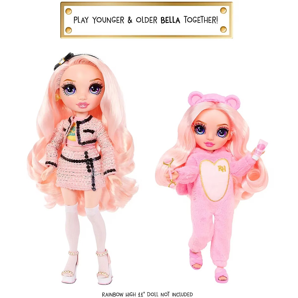 LongProductName - Rainbow High Jr High PJ Party- Bella (Pink) 9” Posable Doll with Soft Onesie, Slippers, Play Accessories, Kids Toy Ages 4-12 Years