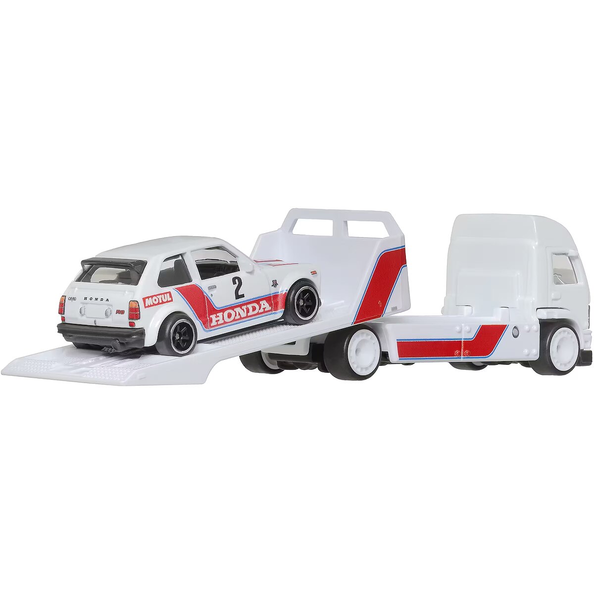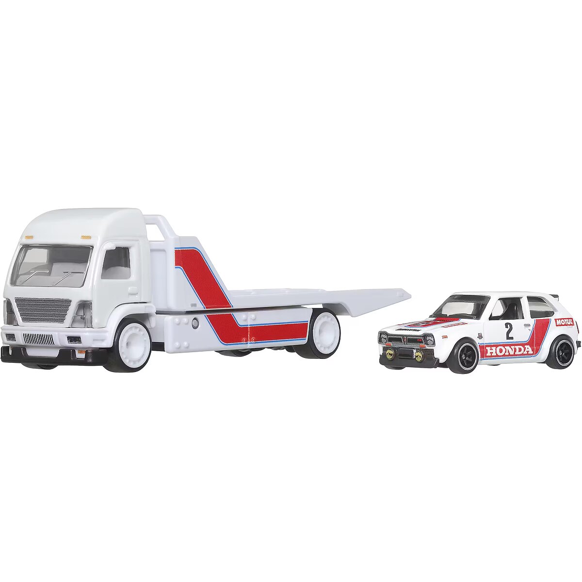 LongSummaryDescription - Hot Wheels Team Transport Truck & Race Car, Gift for Racing Collectors. Product type: Car carrier, Recommended age (min): 3 yr(s), Recommended age (max): 99 yr(s), Material: Metal, Product colour: White