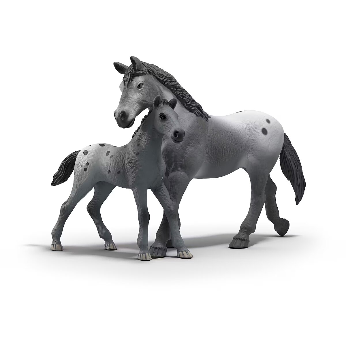LongDesc - Lisa takes her tournament training seriously. After all, Lisa and her Appaloosa mare want to win the next tournament! That’s why they practice hard with the cavaletti and the big obstacle. Lisa uses the lunging whip to provide orientation. The little Appaloosa foal is also present during training and watches her mother in amazement.Nothing stands in the way of Lisa’s tournament training. She has already set up the two cavalettis on the riding paddock. Now she places the steep jump pole on top. She prepared the big obstacle yesterday and lovingly decorated it with stickers. The lunging whip is also ready. Now all that’s missing is her Appaloosa mare. She takes the mare out of the stable together with the little Appaloosa foal and it’s time to go. The pair focus their training on correct timing and jumping force to ensure that they take home a trophy at the next tournament. The big obstacle is still a challenge. But Lisa cleverly helps her mare with the lunging whip. The mare takes off and – hop! – overcomes the obstacle elegantly. The little Appaloosa foal watches closely. Is he already dreaming of his own tournament career?