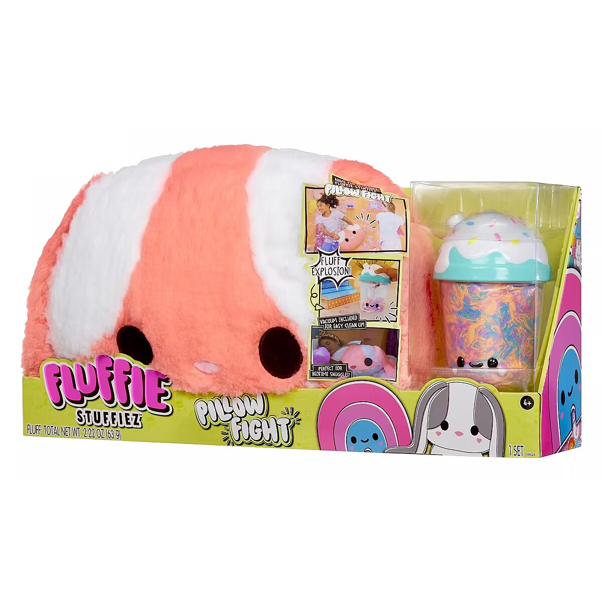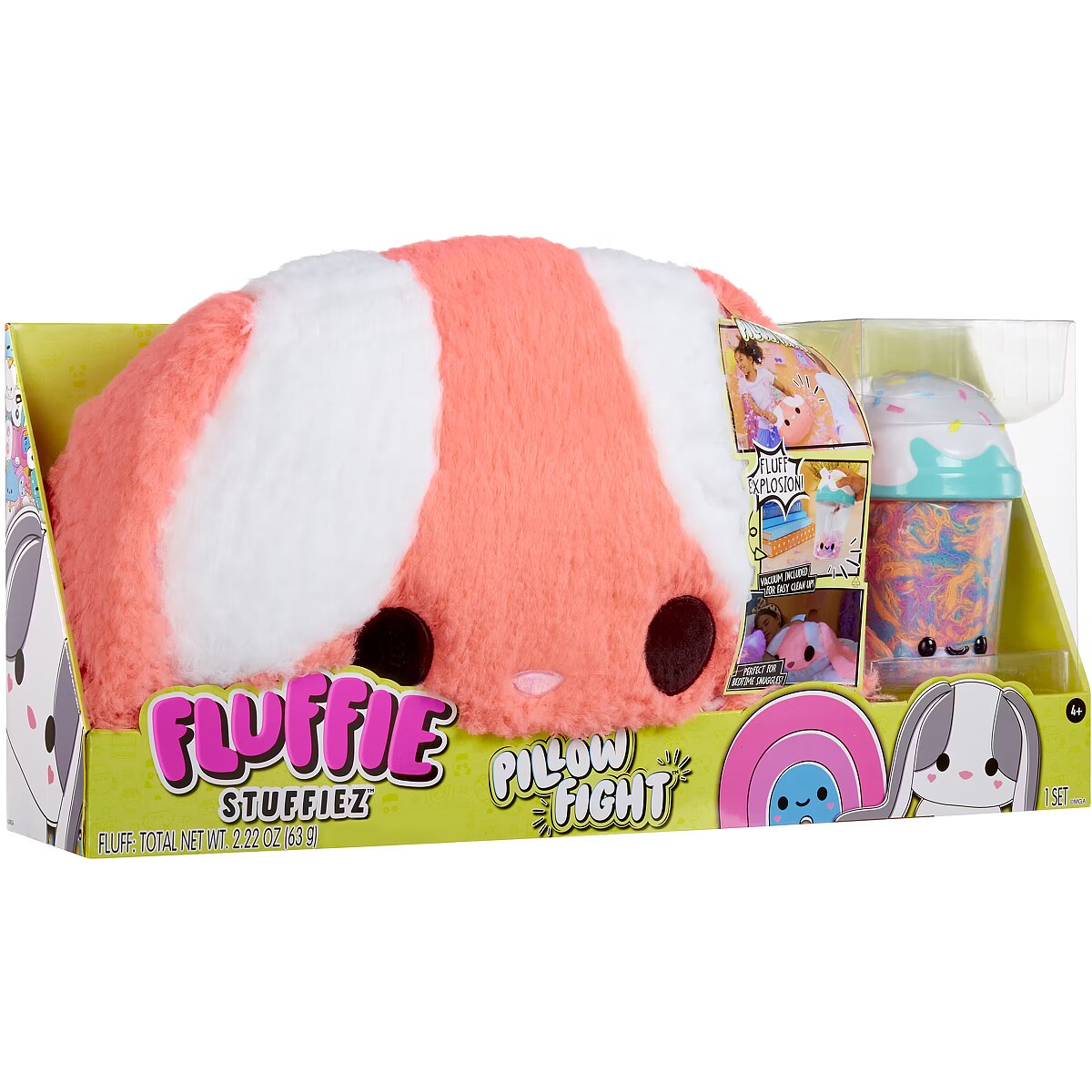 LongDesc - Meet Fluffie Stuffiez™ Pillow Fight! Enjoy playing with your favorite characters, Bunny and Rainbow, in a brand new way! Experience the fun with the ultra soft fluff! Clean up the fluff with the character vacuum to help restuff your character! The perfect play for your slumber party.